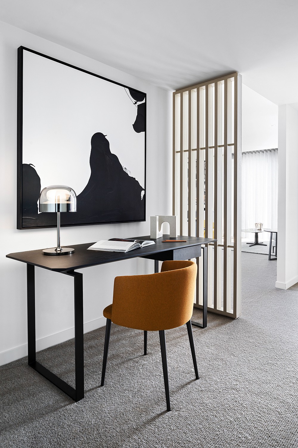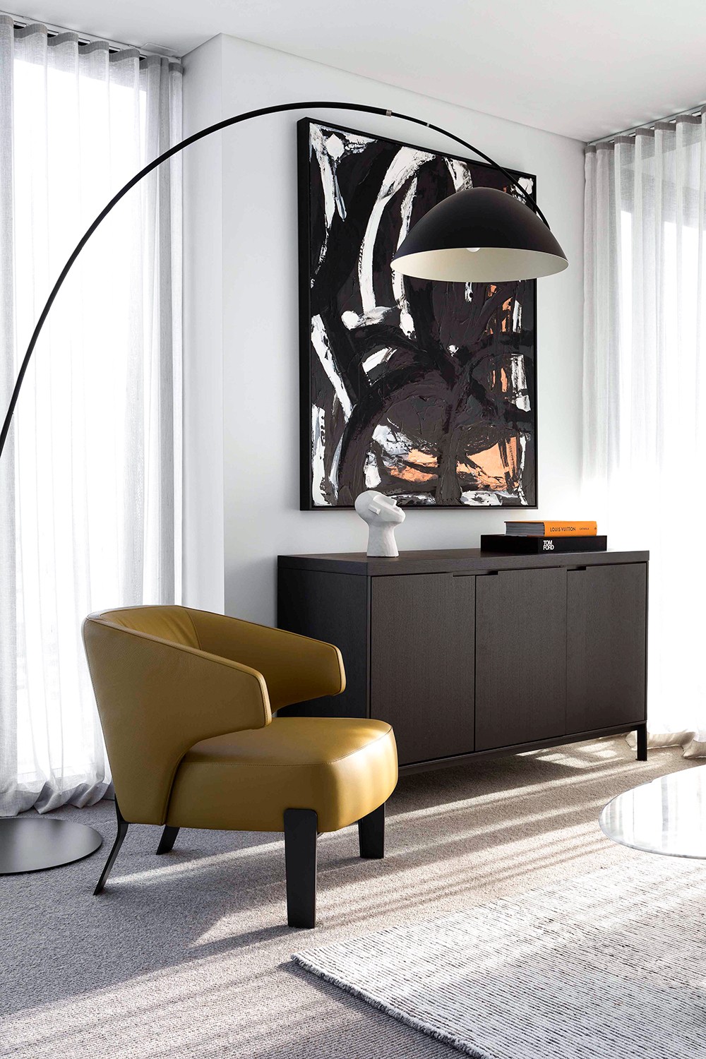 Sleek and modern CAMERICH furniture adorns the different rooms like a work of art, from the simple and elegant living room, the clean and bright dining area, to the cozy bedroom, the easy working area and the relaxing corners, representing different life scenarios in the spaces.