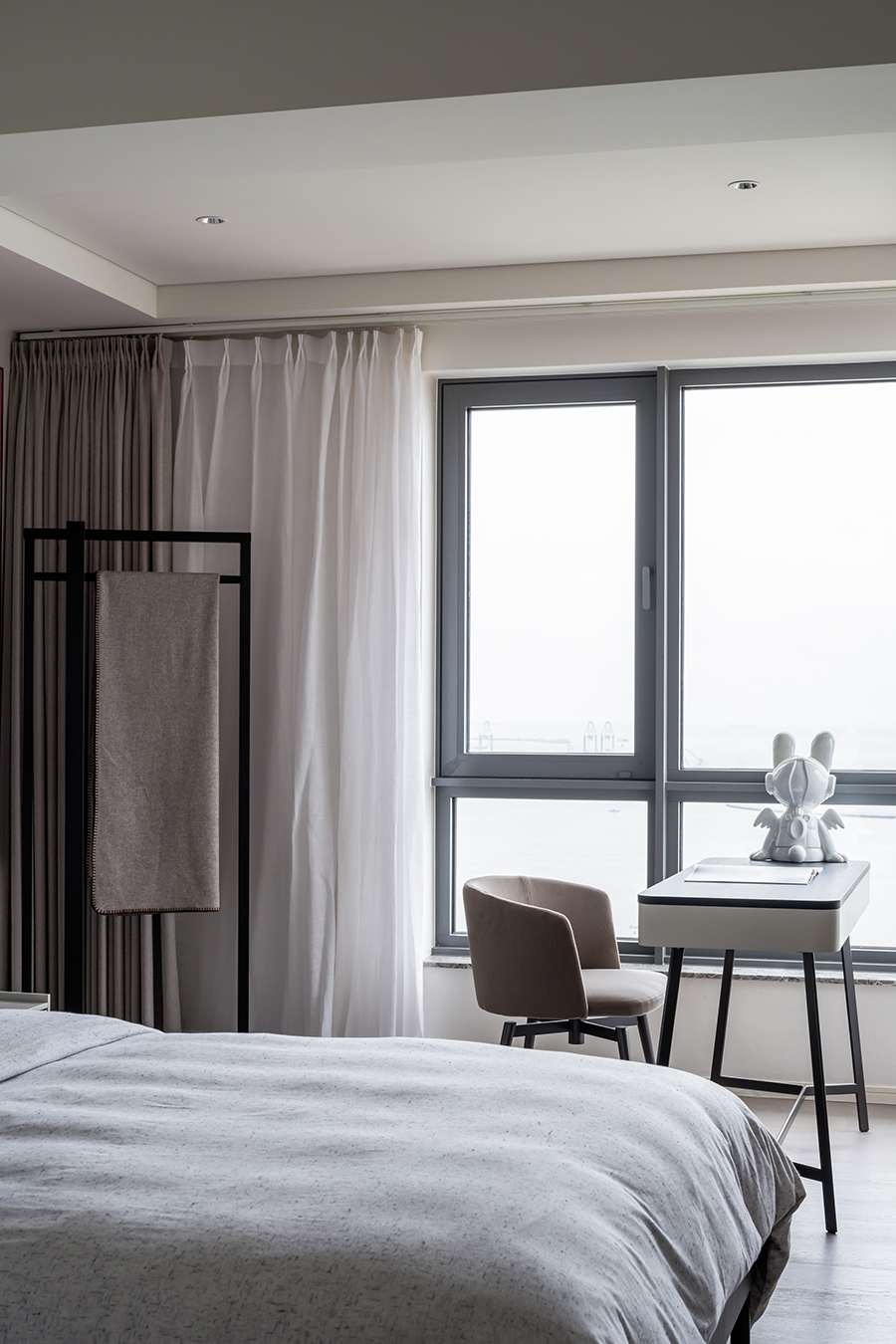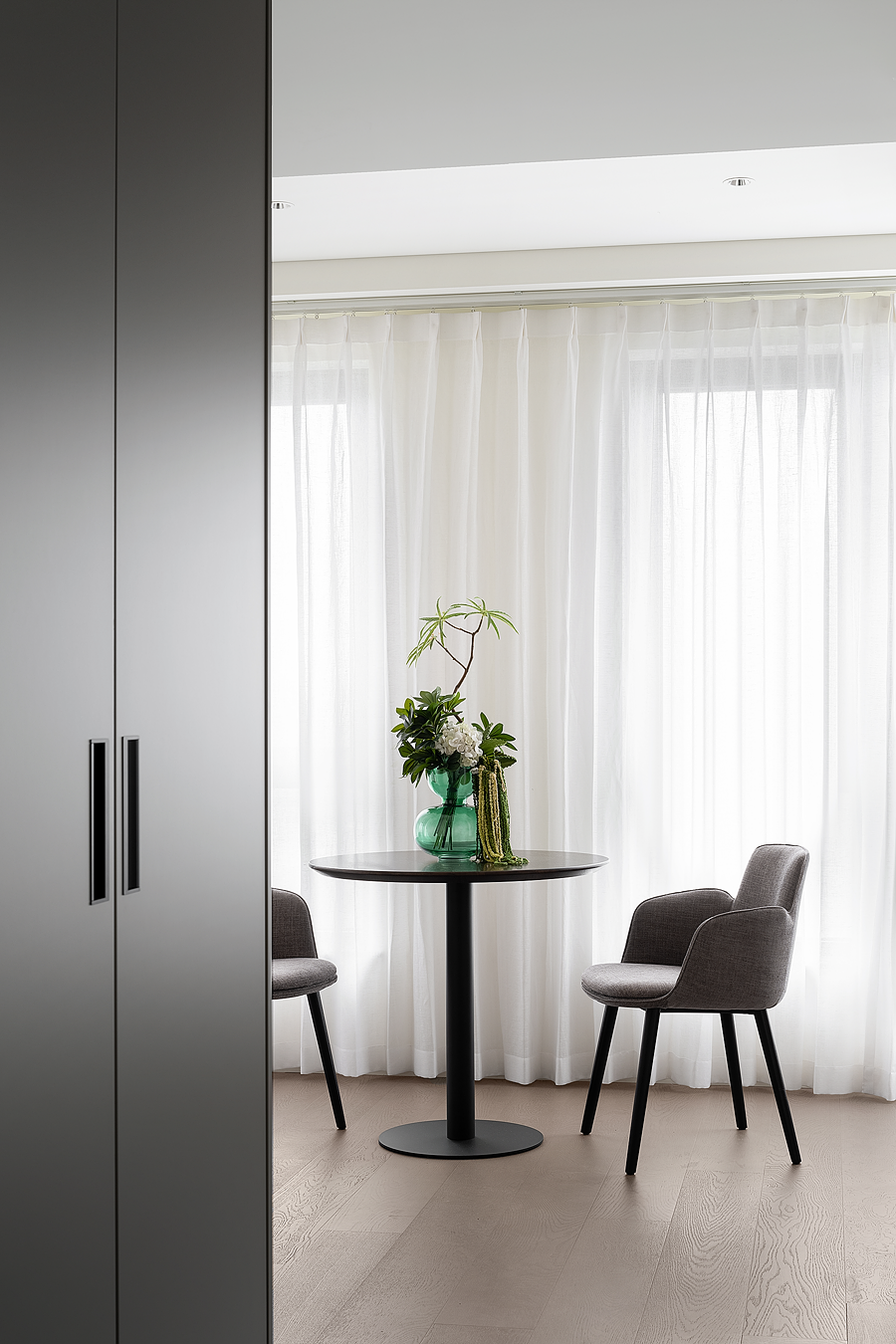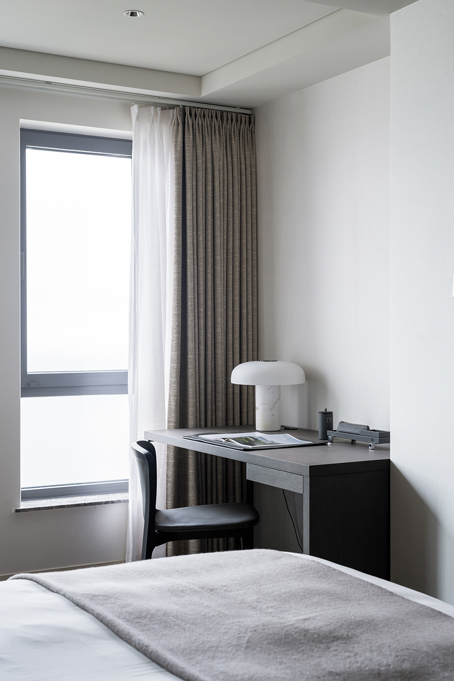 This space serves not only as a place for rest but also includes a functional area for work and study. The thoughtfully designed layout features a simple yet practical office area positioned conveniently next to the window. Complete with the elegant WITTY desk and BALLET chair, it creates a perfect nook for temporary work or study.