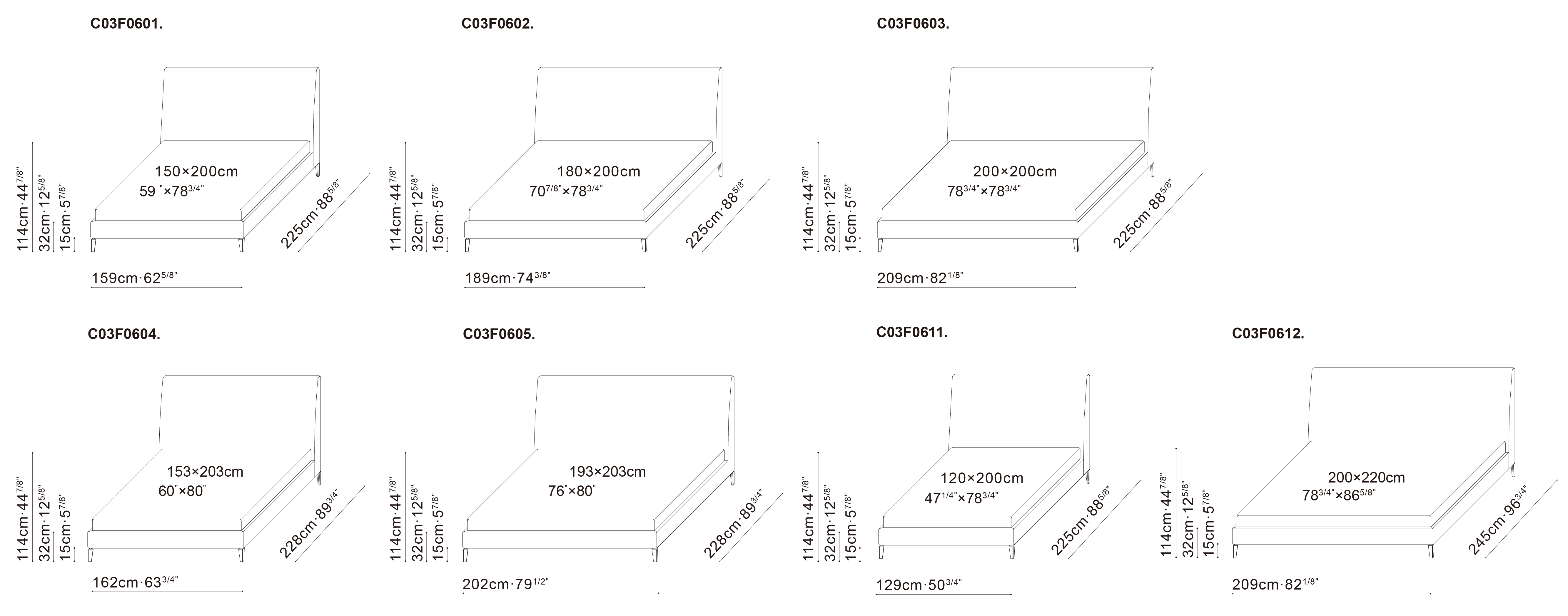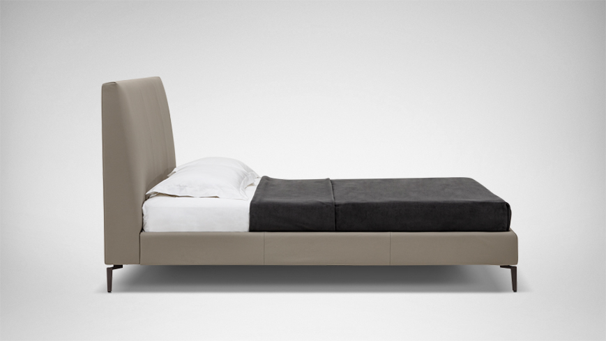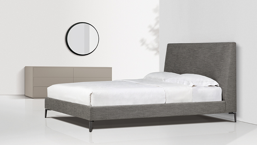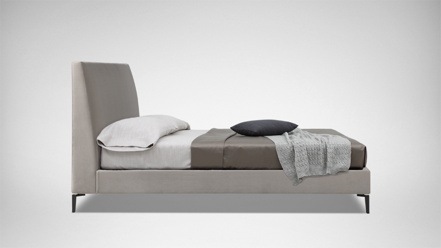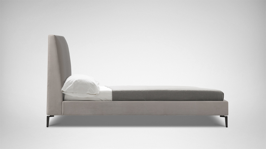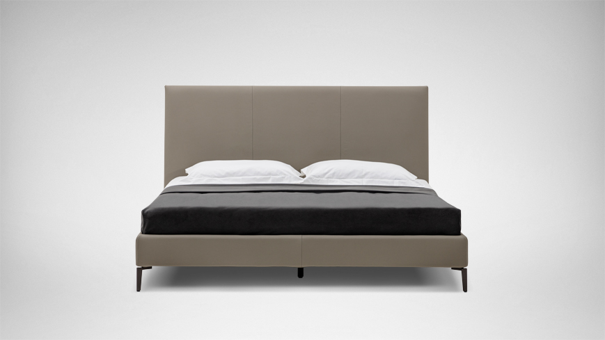 高背的床头设计带来舒适的坐靠体验,亦可满足现代人对厚床垫的偏爱,挑空的锥形腿塑造了挺拔的姿态。