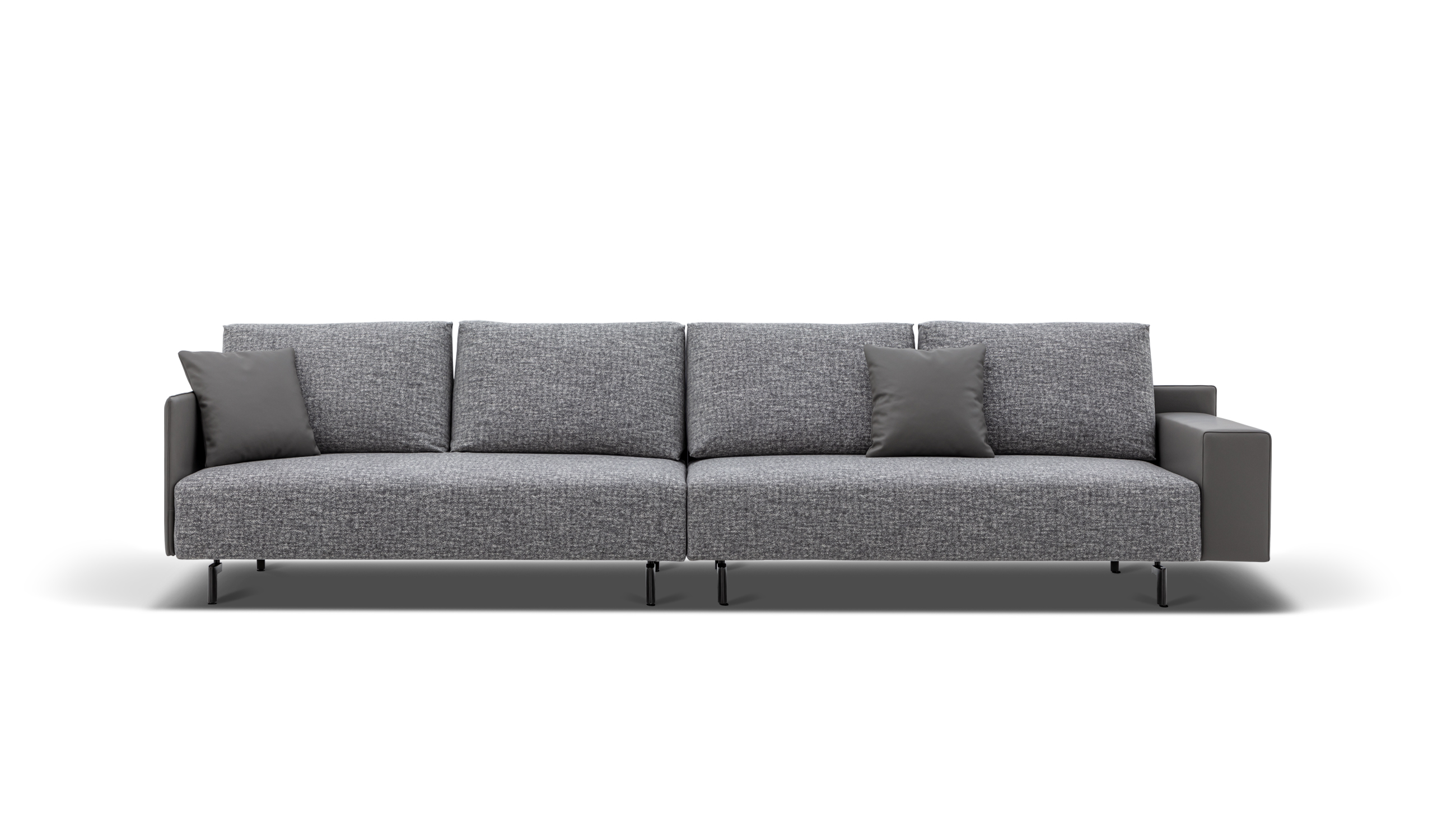 设计灵感来源于中国的甲胄元素,融合了中国传统文化和西方设计理念。方正、挺拔的外框,宽窄不同的扶手,搭配造型独特的靠垫和整体设计的坐垫,精致与舒适兼备。