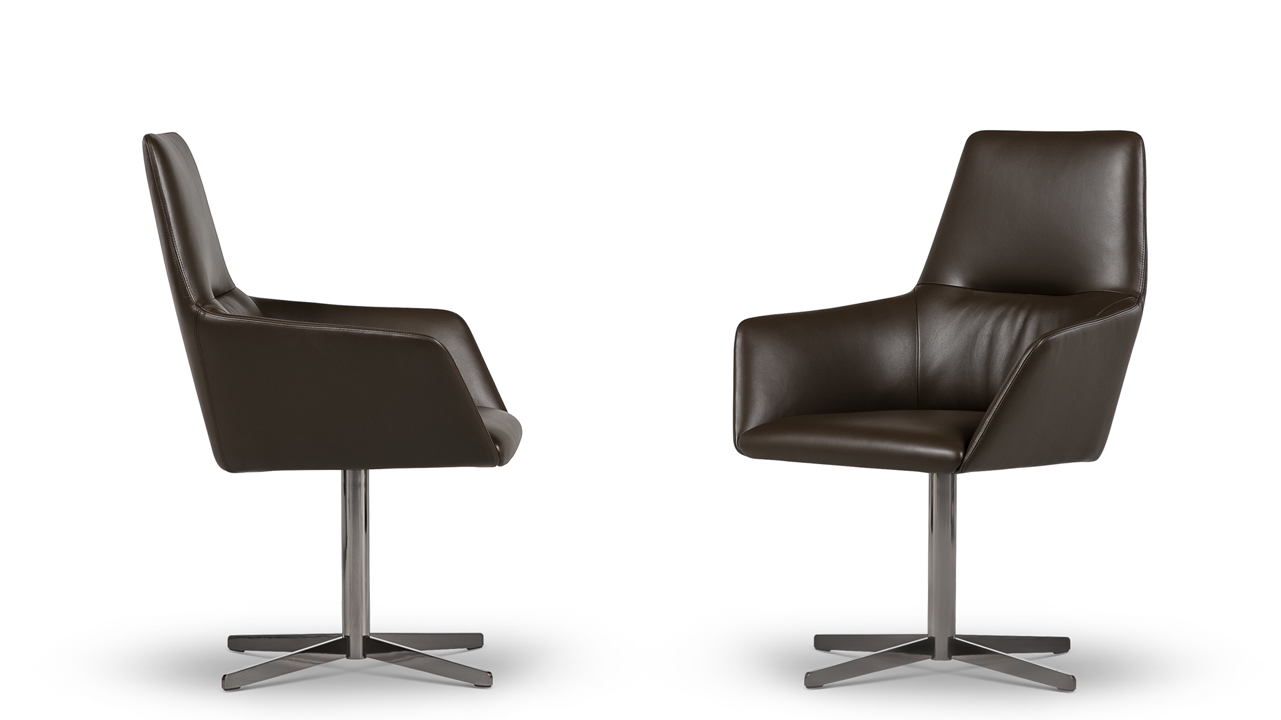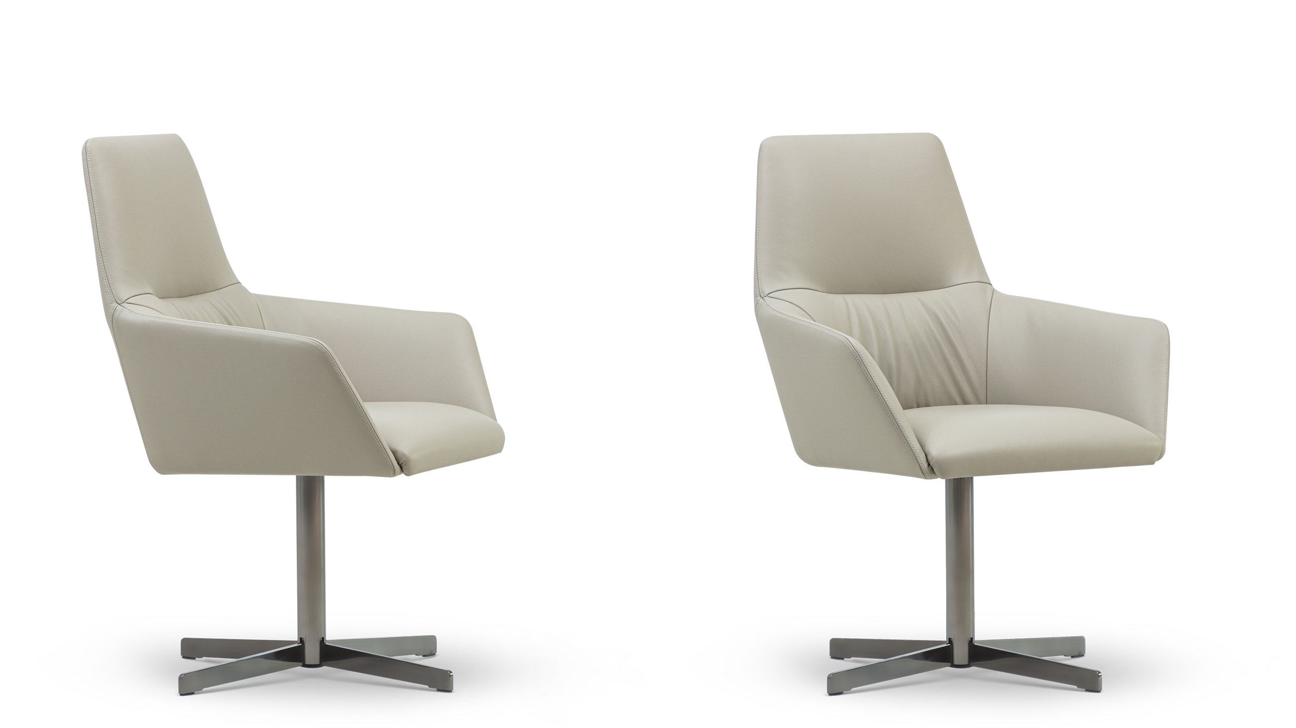 宽阔的造型给人更多自由空间,既有木腿托起的稳重,也有金属腿旋转带来的愉悦。