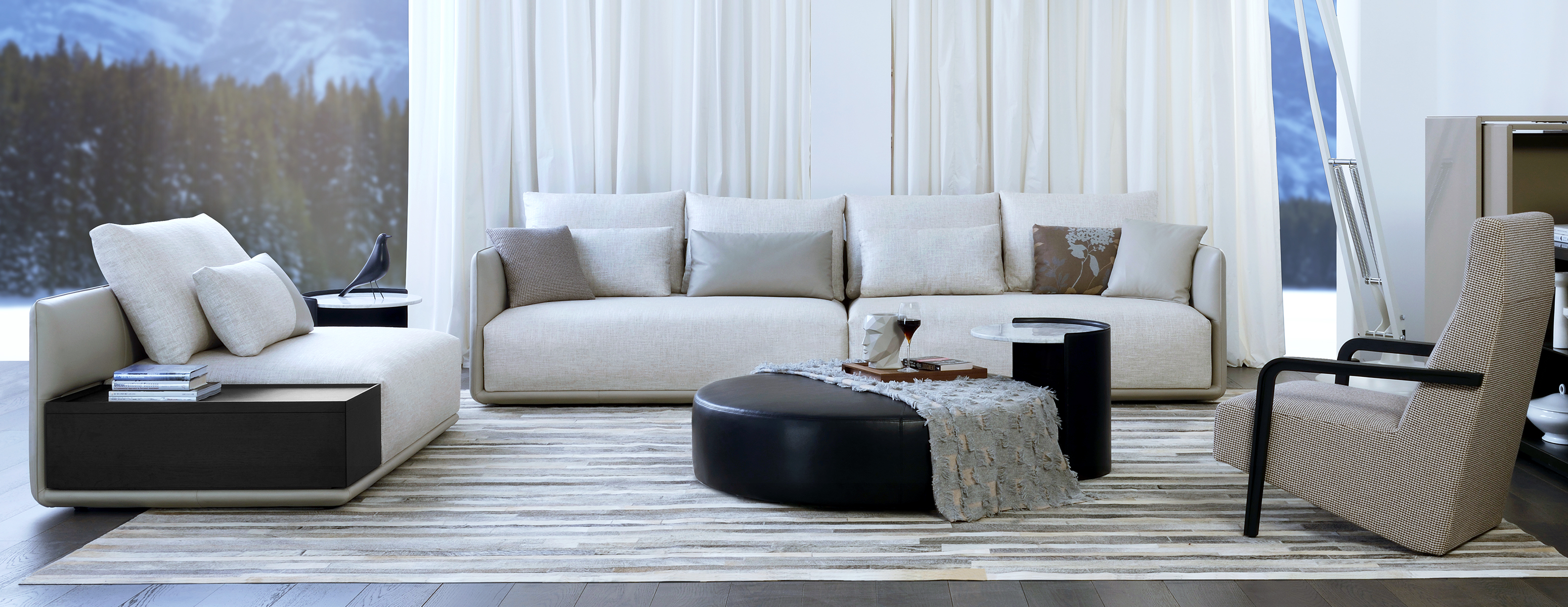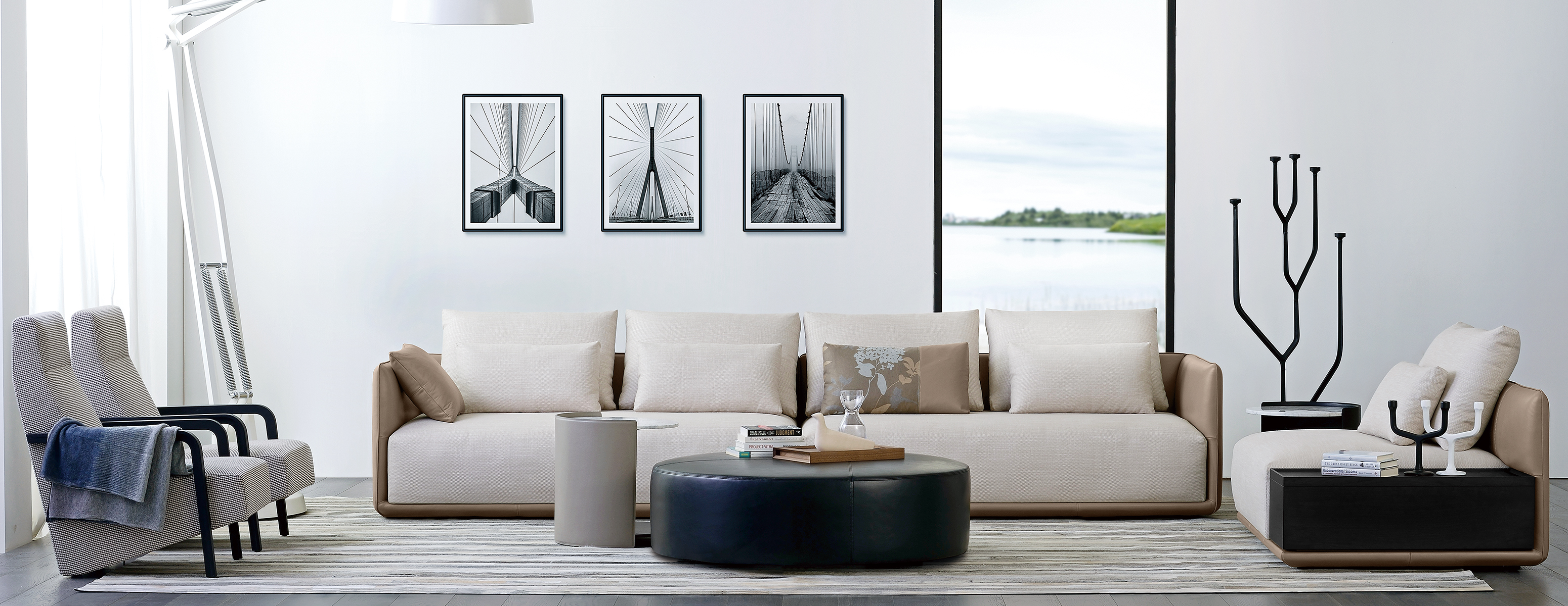 扶手靠背弧线造型;扶手有宽窄两种选择,宽扶手既是宝威官方网站又可储物。