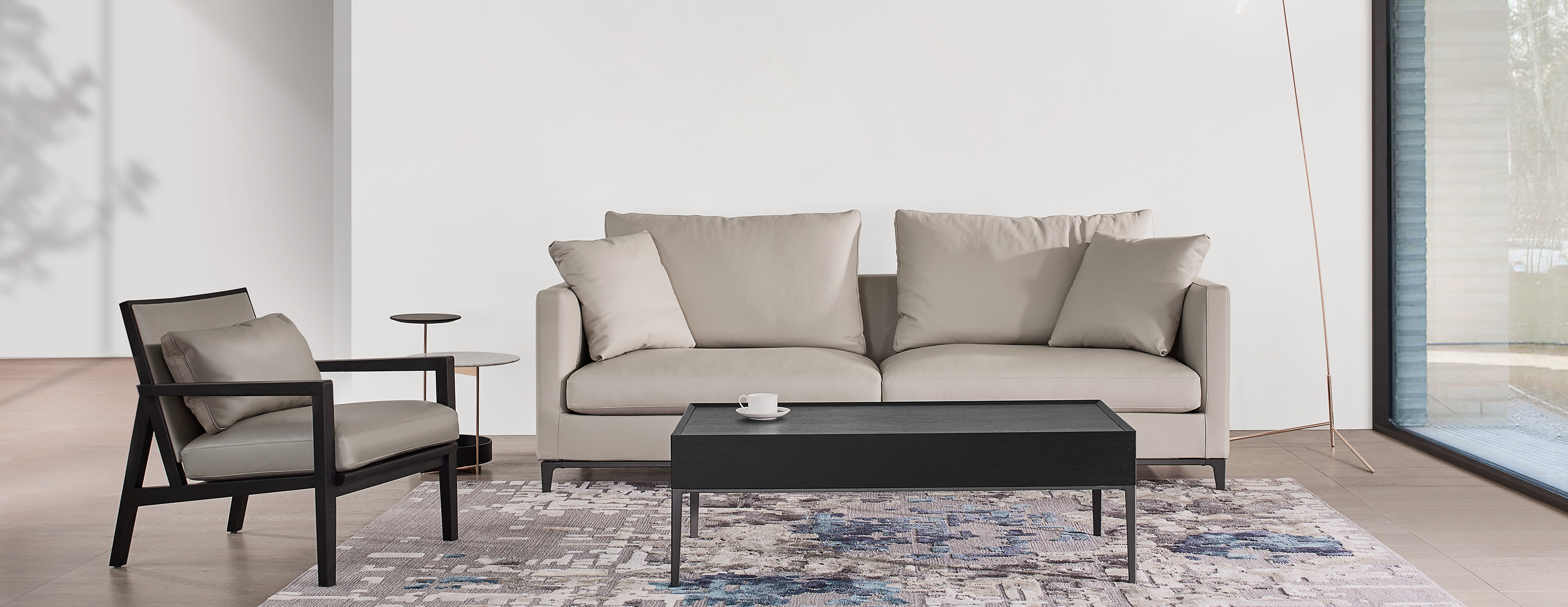 锥型腿造型融合了新古典与现代的设计元素,窄长的扶手与靠背,提升了沙发的空间利用率。