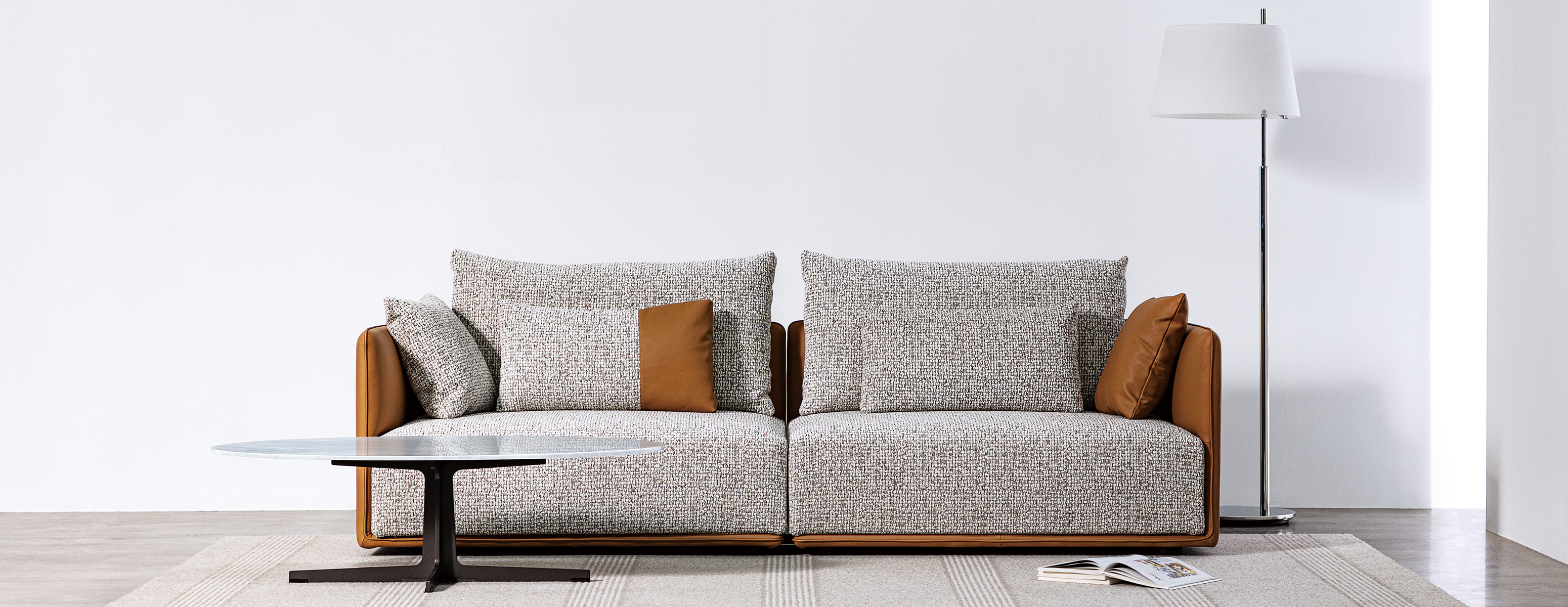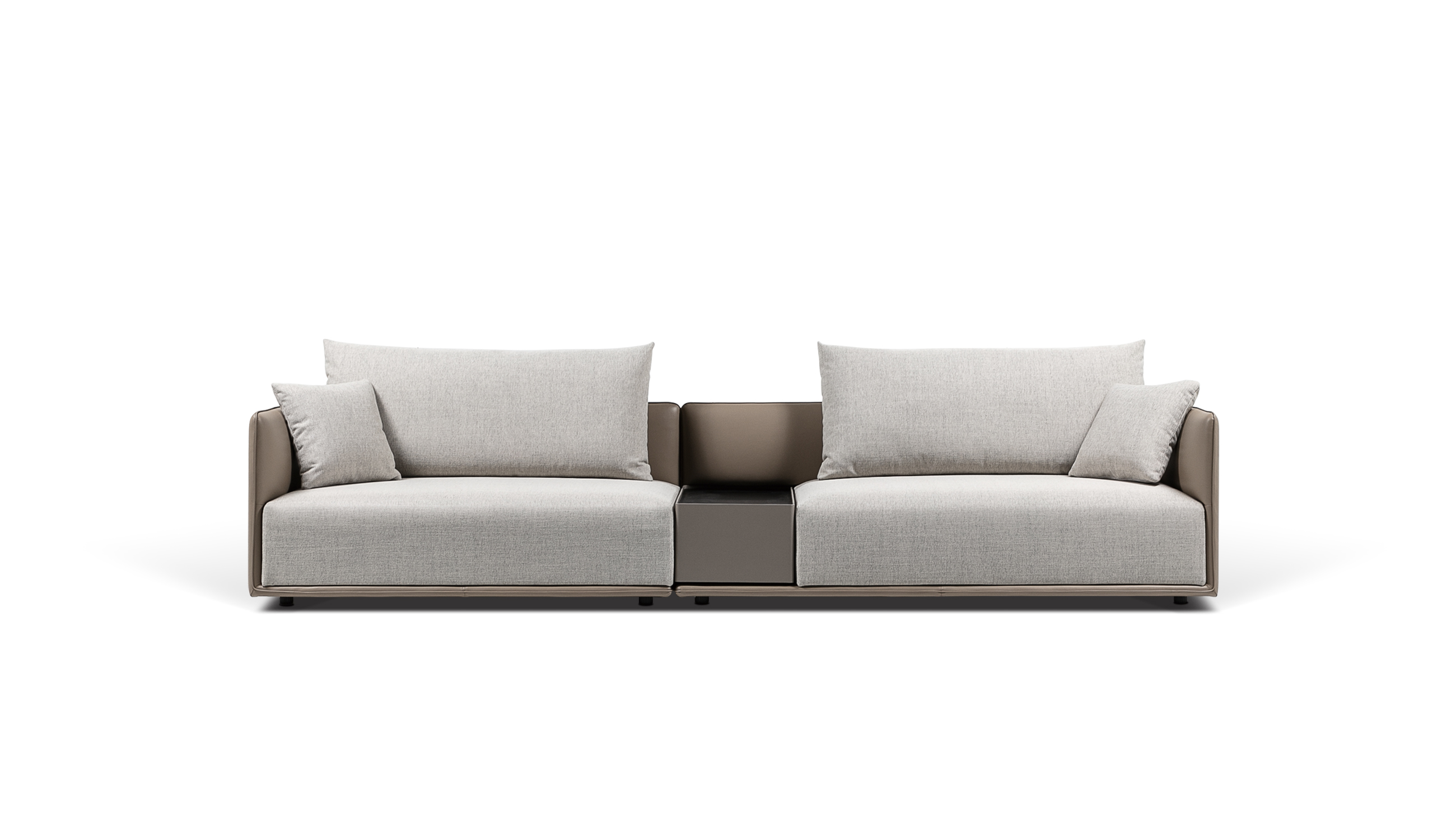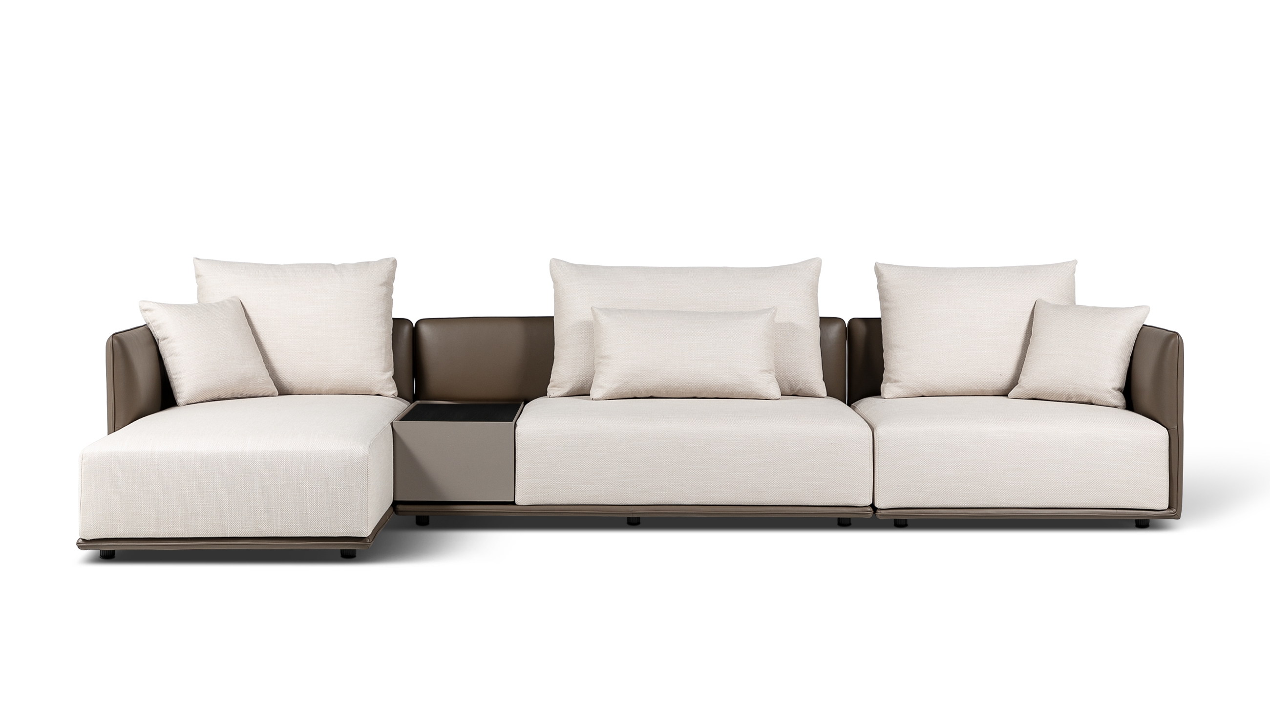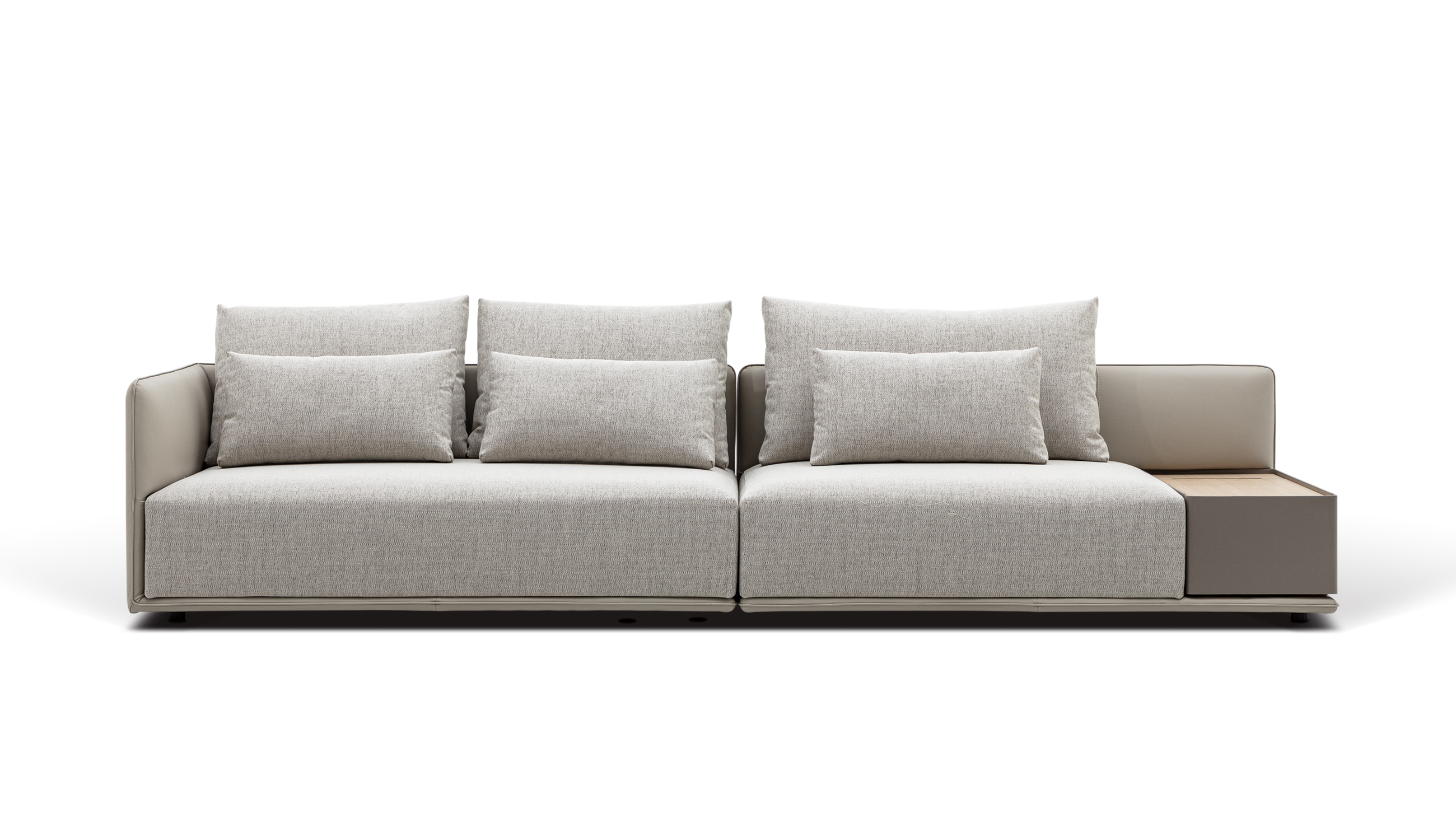 立体滚边凸显流线型轮廓,钢木框架诠释结构力学的精妙,搭配柔软舒适的坐垫,体现了刚柔相济的和谐。简洁的边几由木质和皮革拼接而成,内部的储物空间为使用增添了几分惬意。