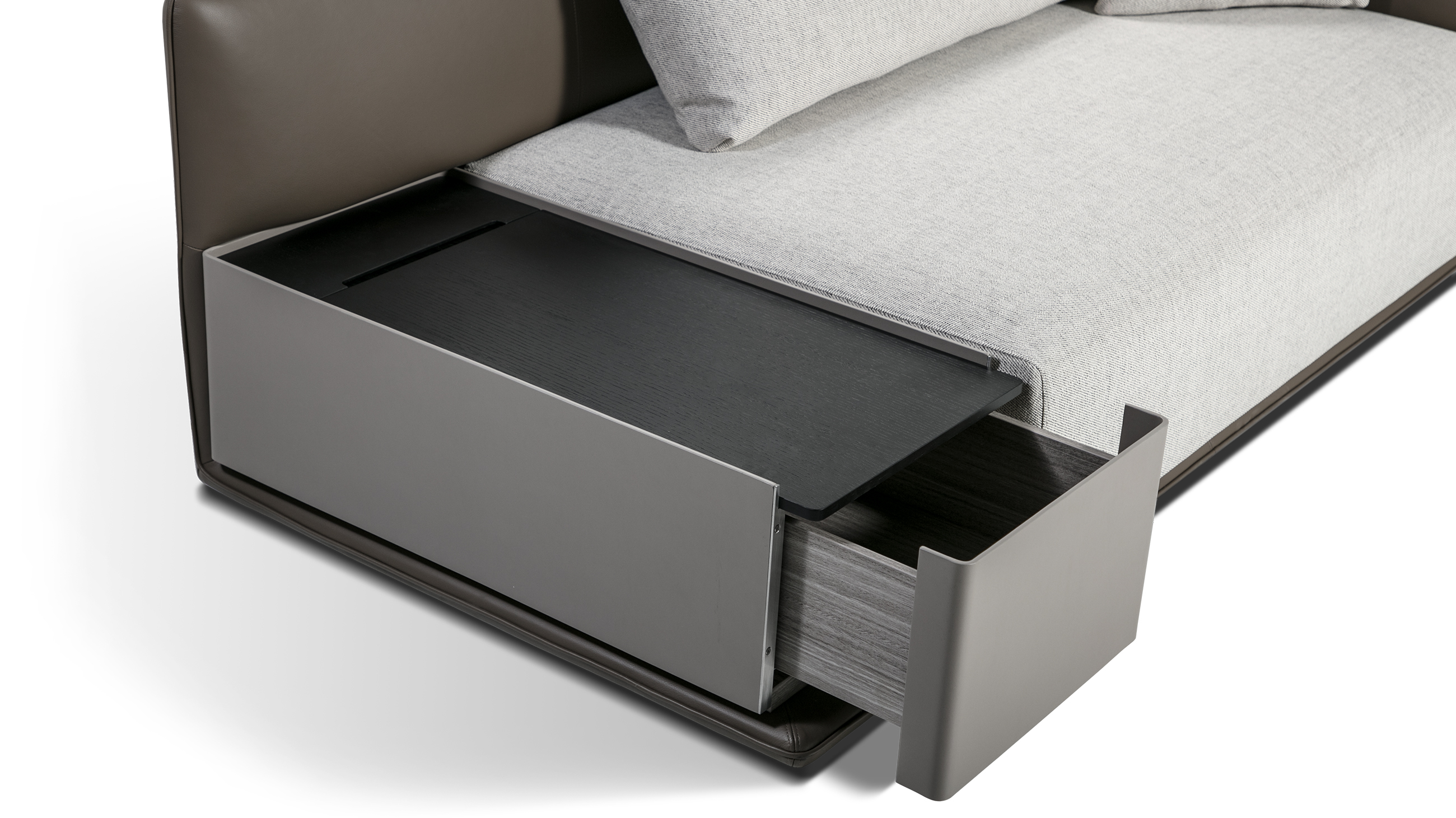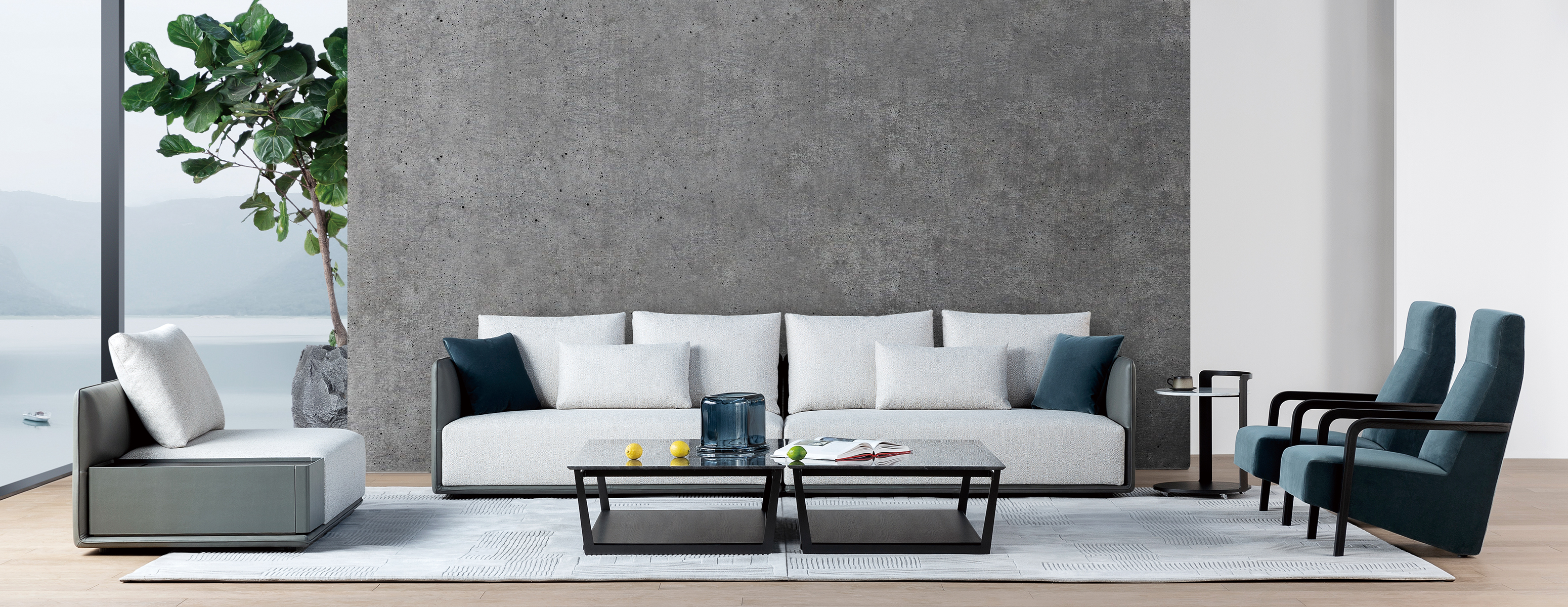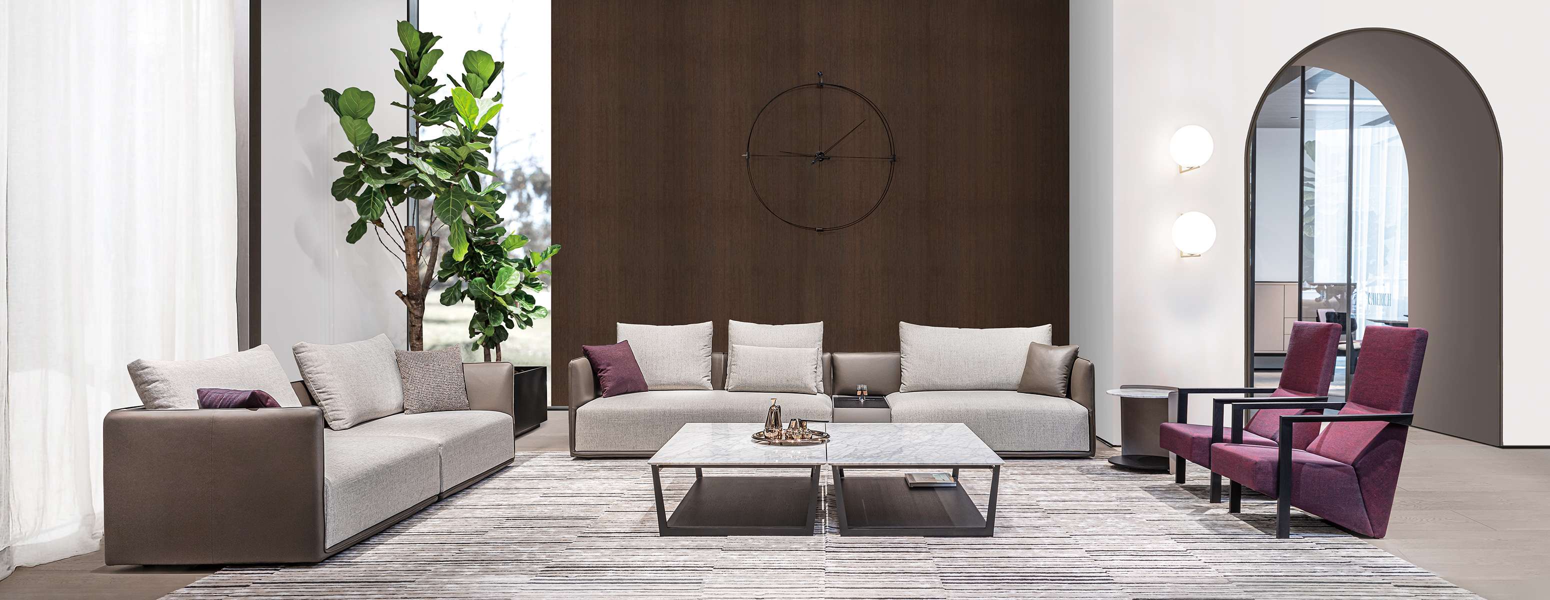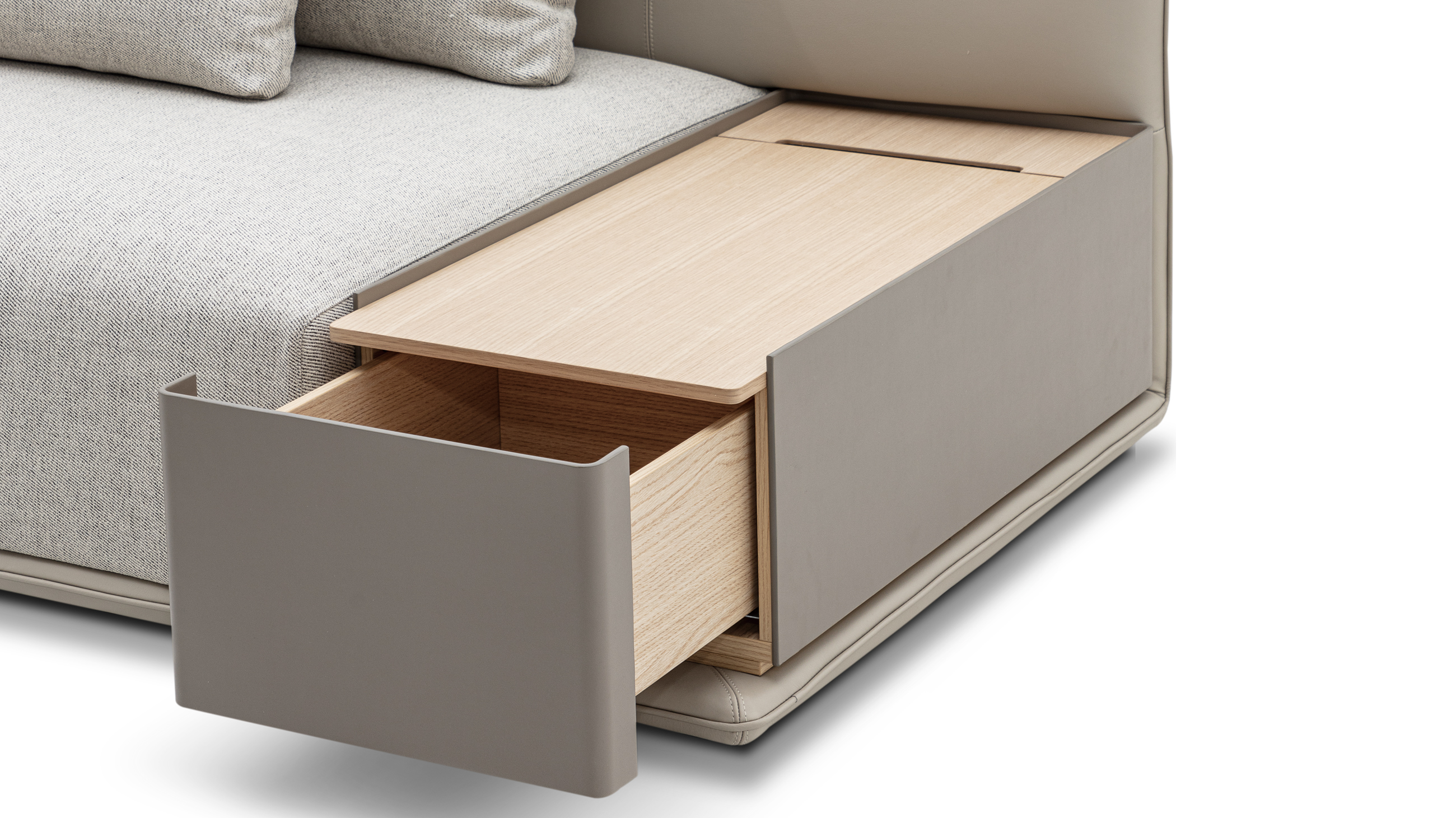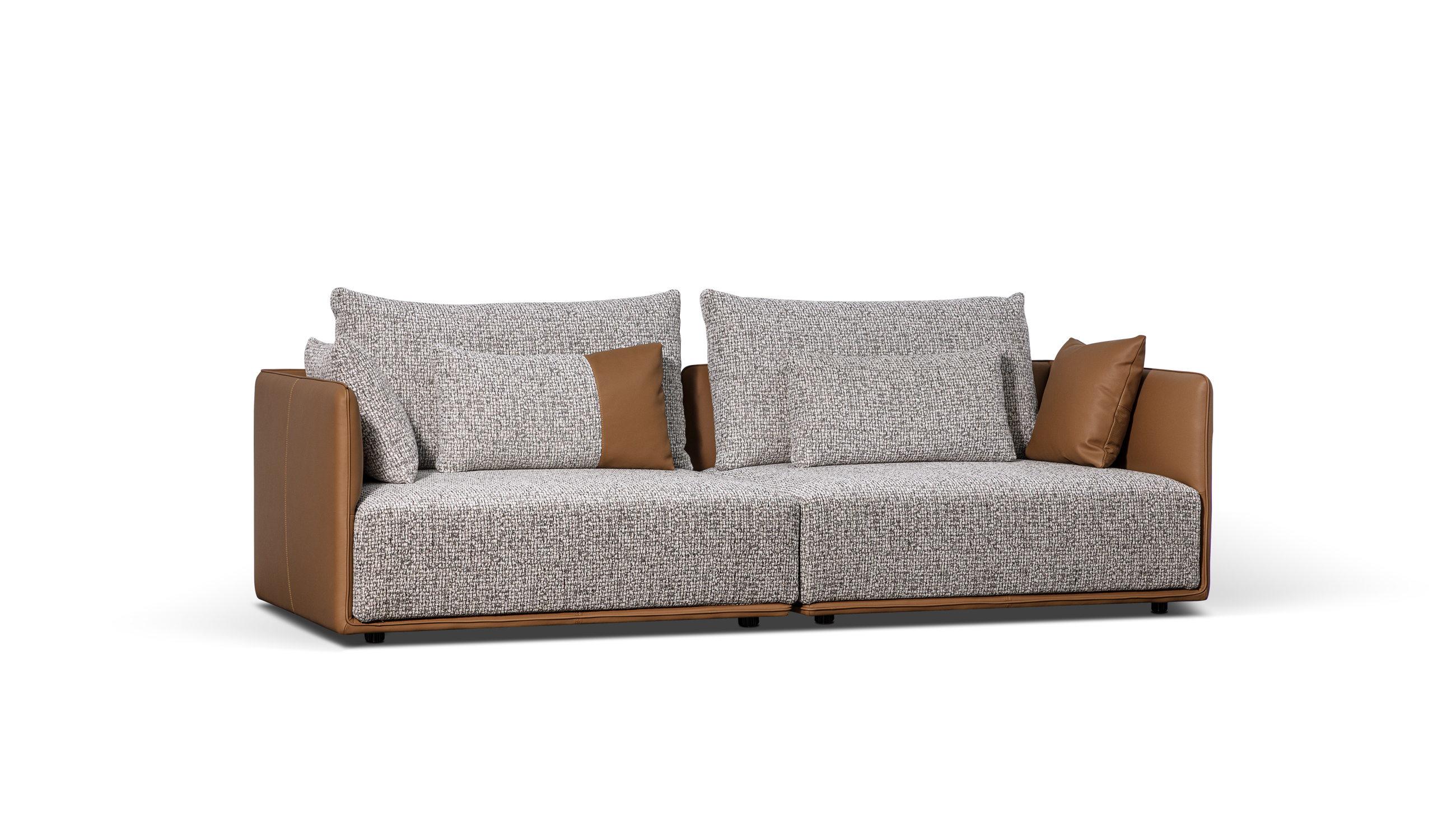 立体滚边凸显流线型轮廓,钢木框架诠释结构力学的精妙,搭配柔软舒适的坐垫,体现了刚柔相济的和谐。简洁的边几由木质和皮革拼接而成,内部的储物空间为使用增添了几分惬意。