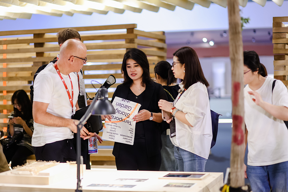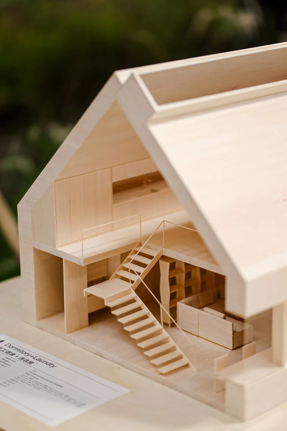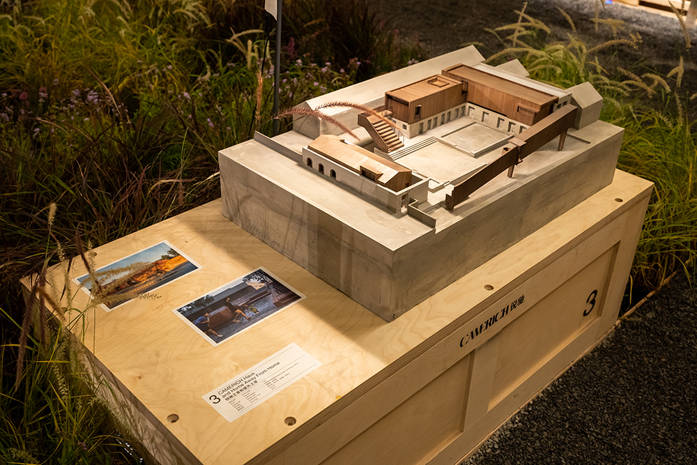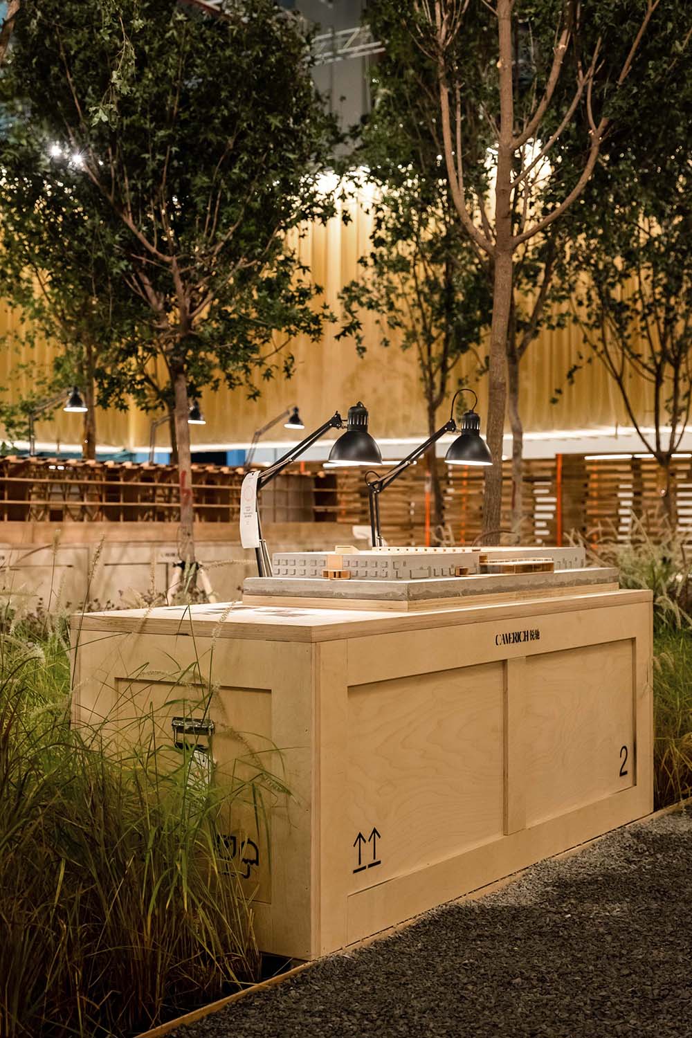 建筑模型的展台,即是运输时所装载的木箱本身,展览结束后模型将被原箱寄回。展台灯具将运回北京园区的工作营,而营造周圈氛围的线性灯带将用于嘉兴工厂的辅助空间照明。