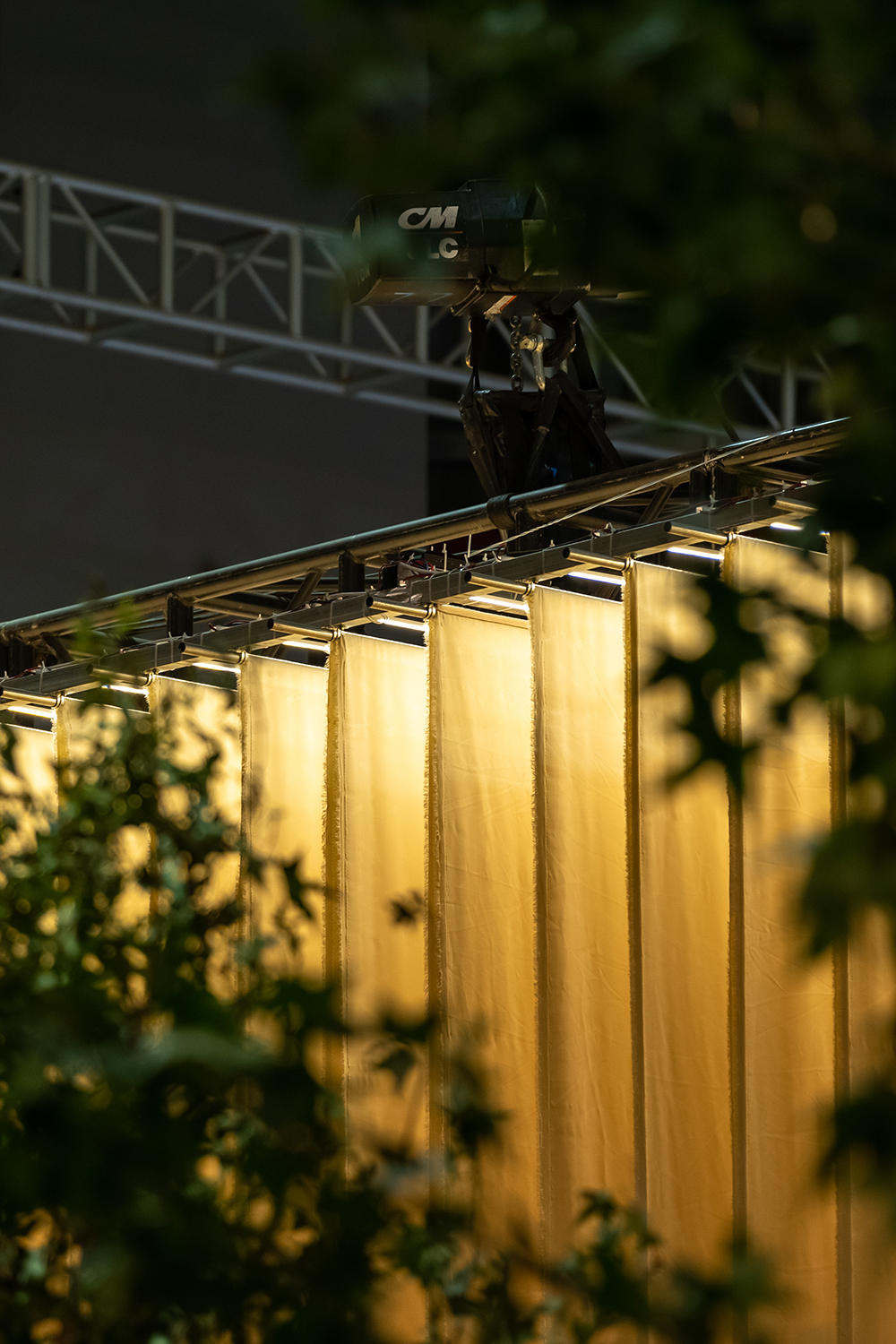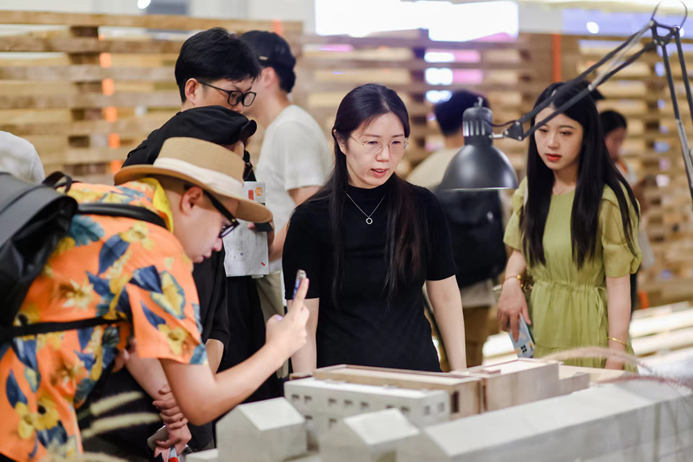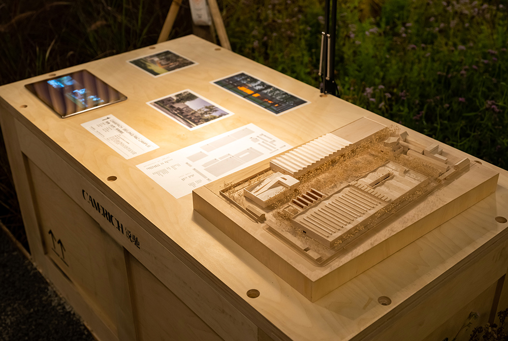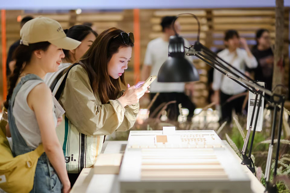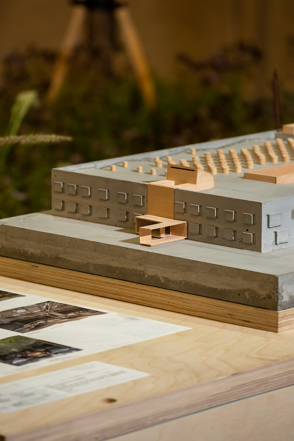 建筑模型的展台,即是运输时所装载的木箱本身,展览结束后模型将被原箱寄回。展台灯具将运回北京园区的工作营,而营造周圈氛围的线性灯带将用于嘉兴工厂的辅助空间照明。
