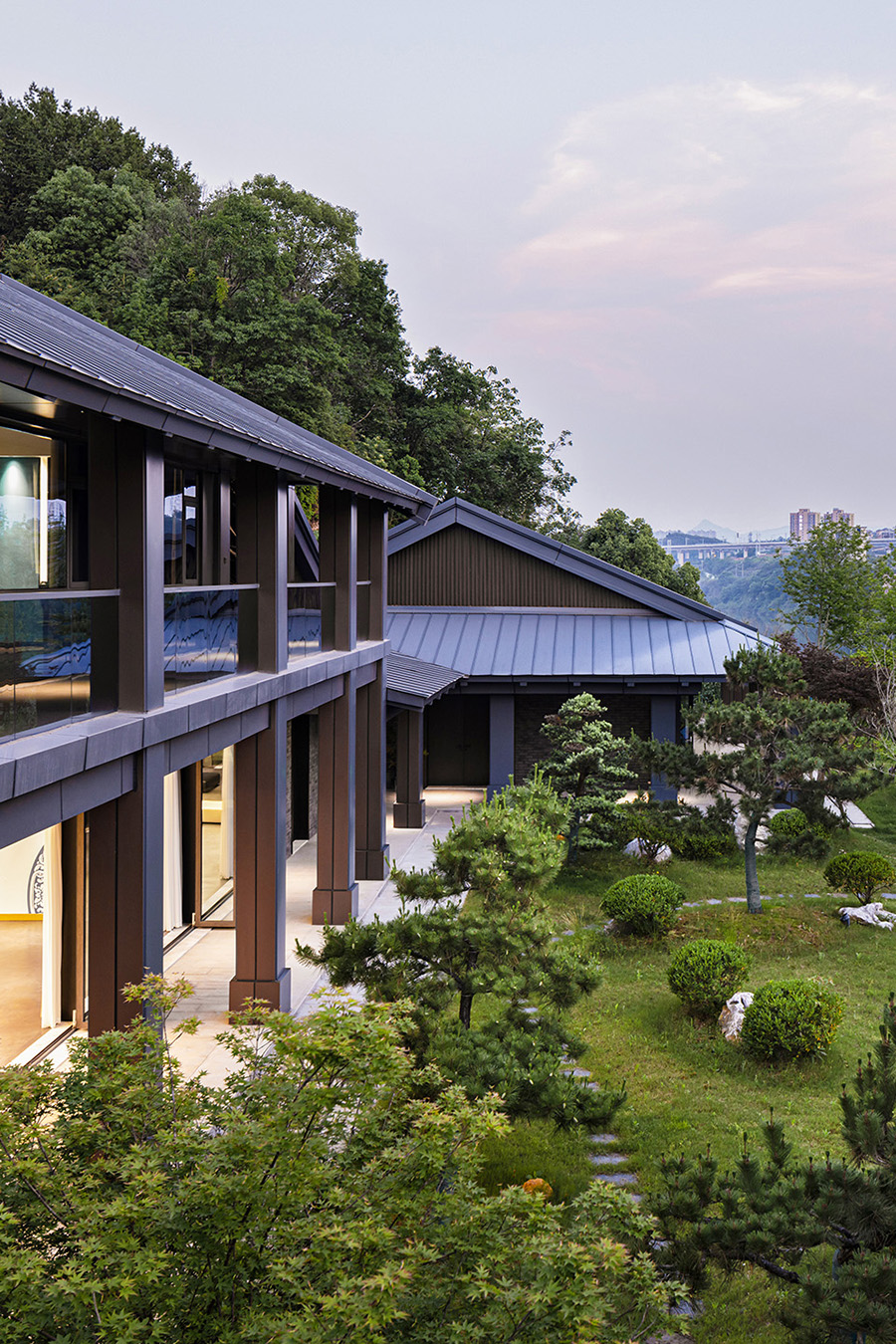 本厅形如相握之手,又如太极之图,意寓着人与自然、人与人、人与社会、中国与世界、过去与未来,一切美好的、友好的无限联接。