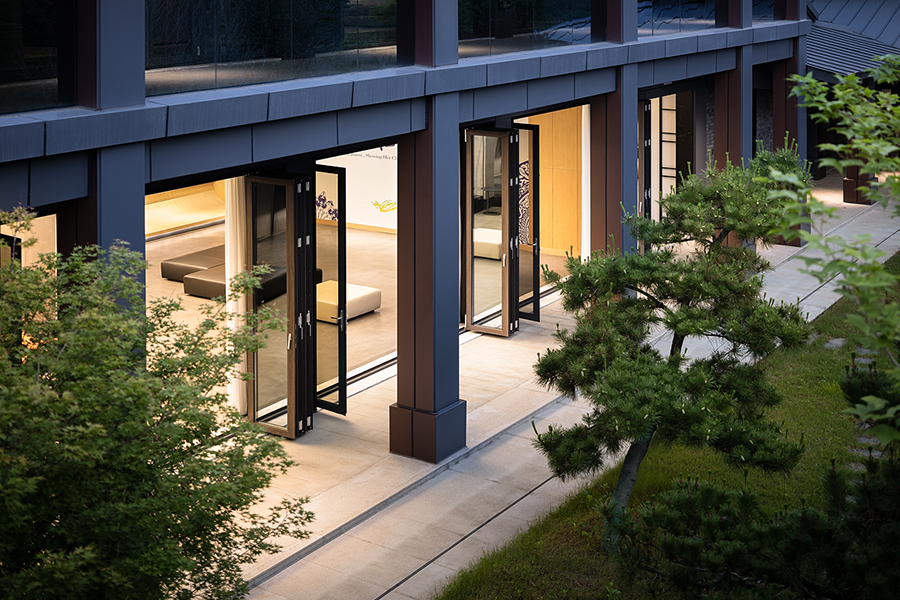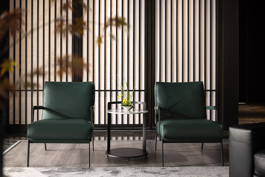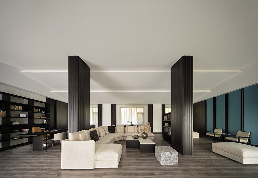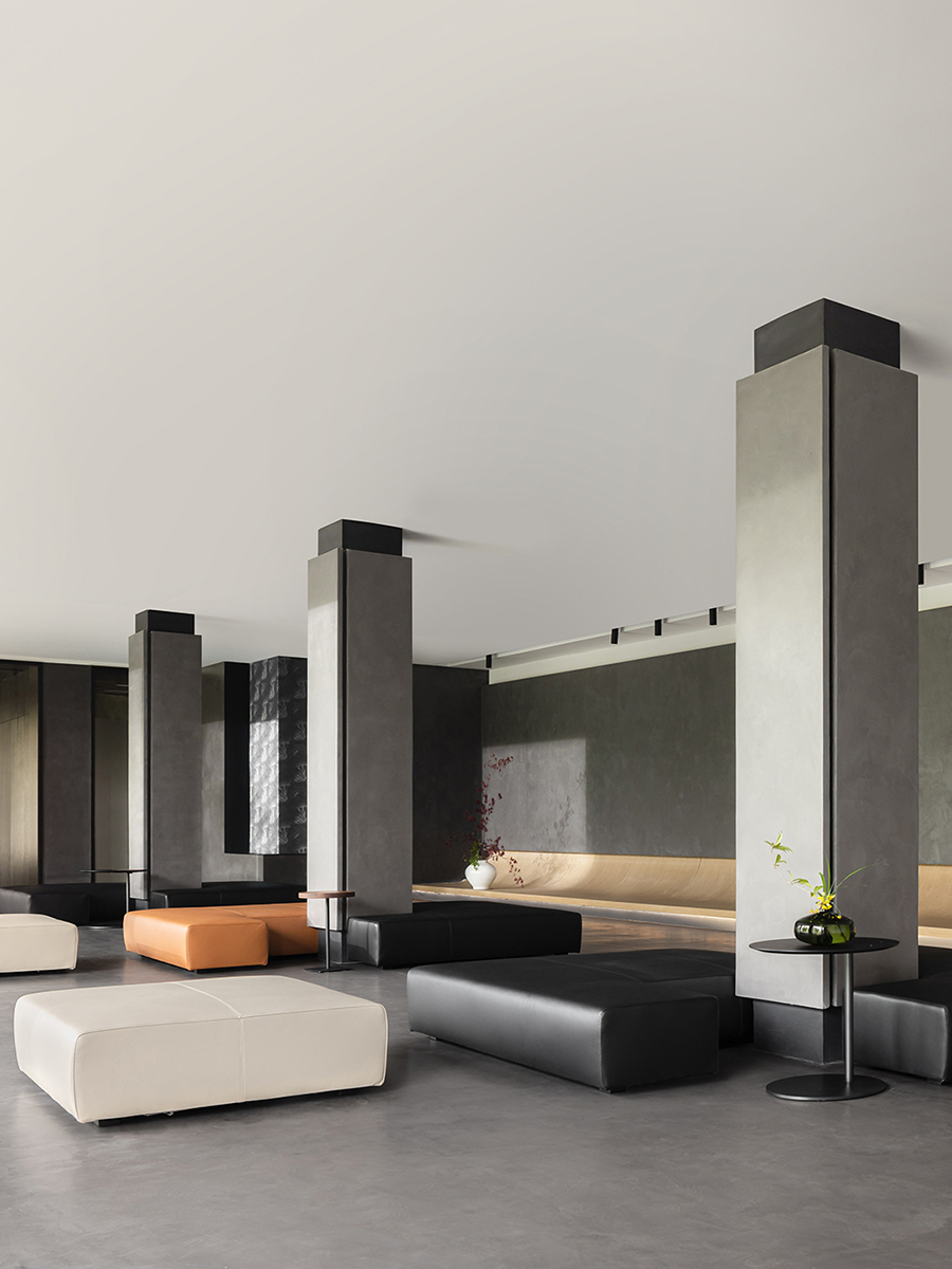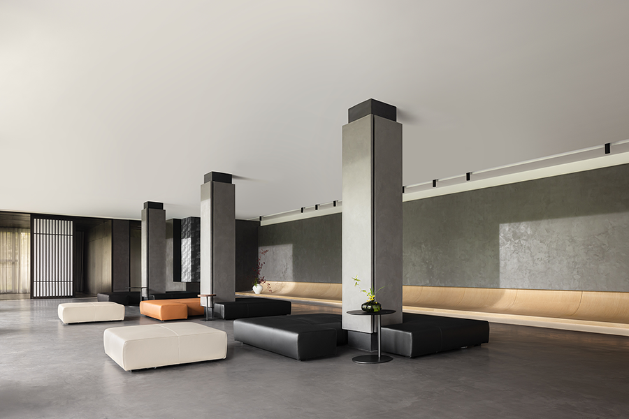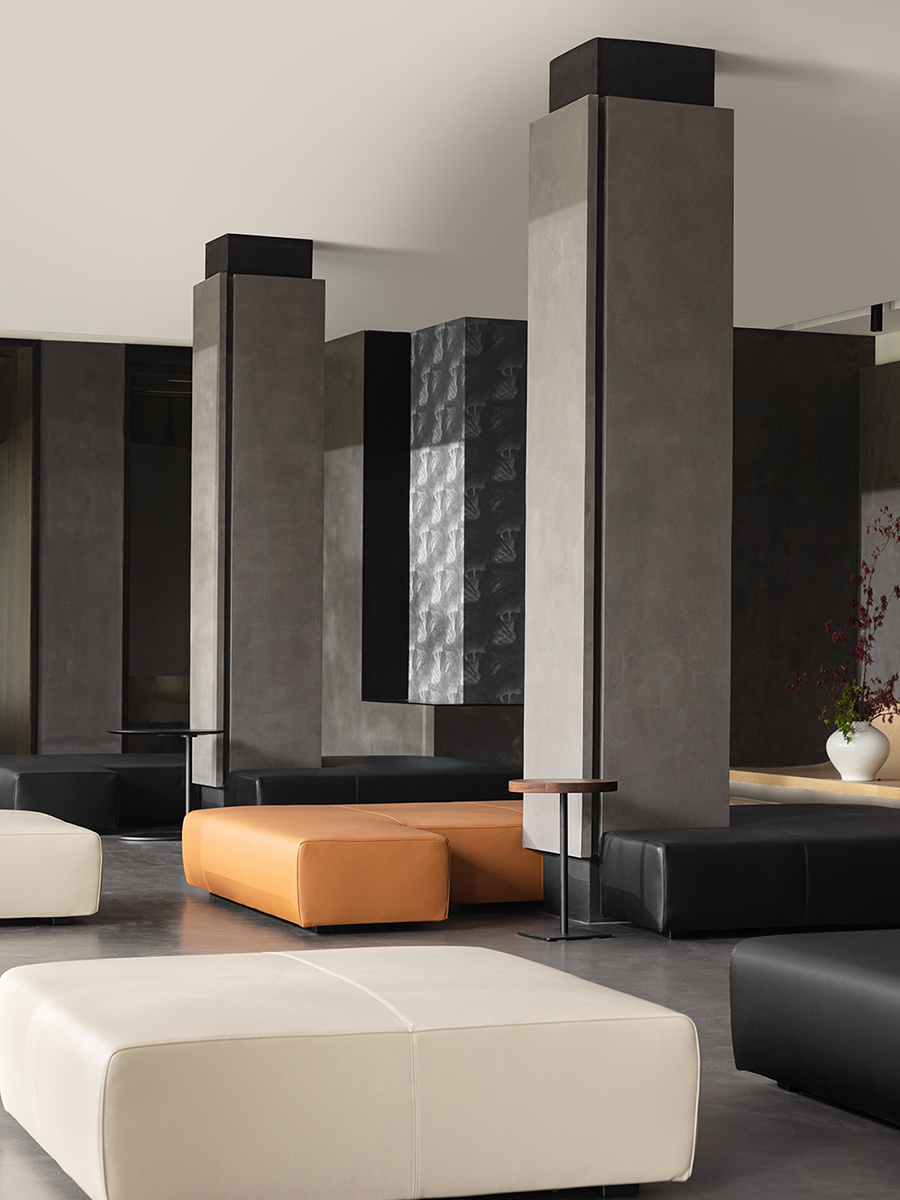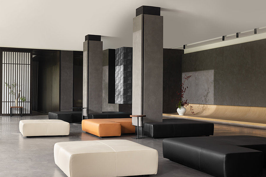 CASA榻相对低矮的设计比例,带给秀厅更为通透的视野。异形的设计,位置随心而动,能够完美融入空间。舒适且具有光泽感的皮质质感,增加了展厅的温润之美,让人宁静或沉思。