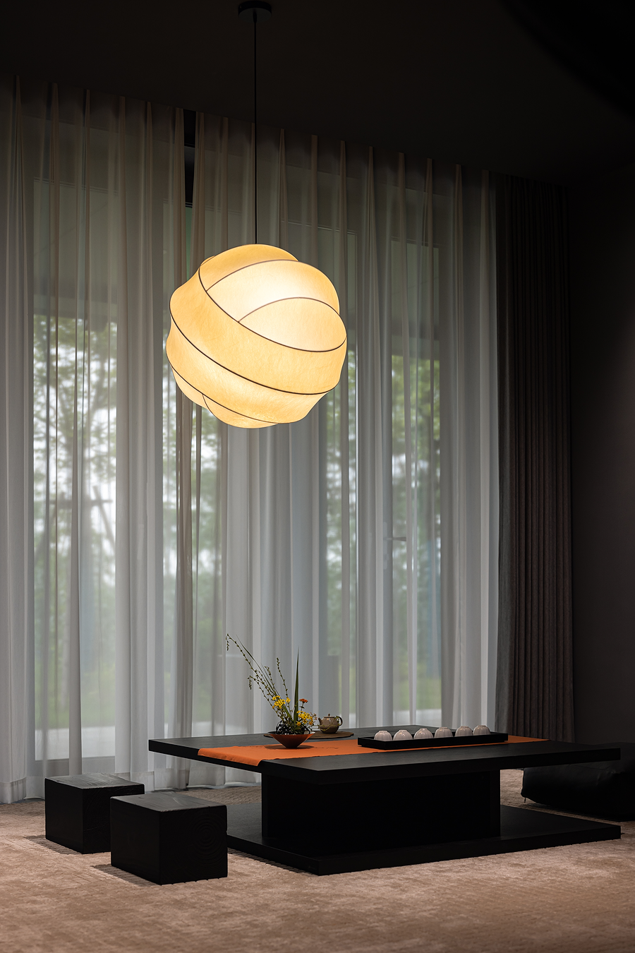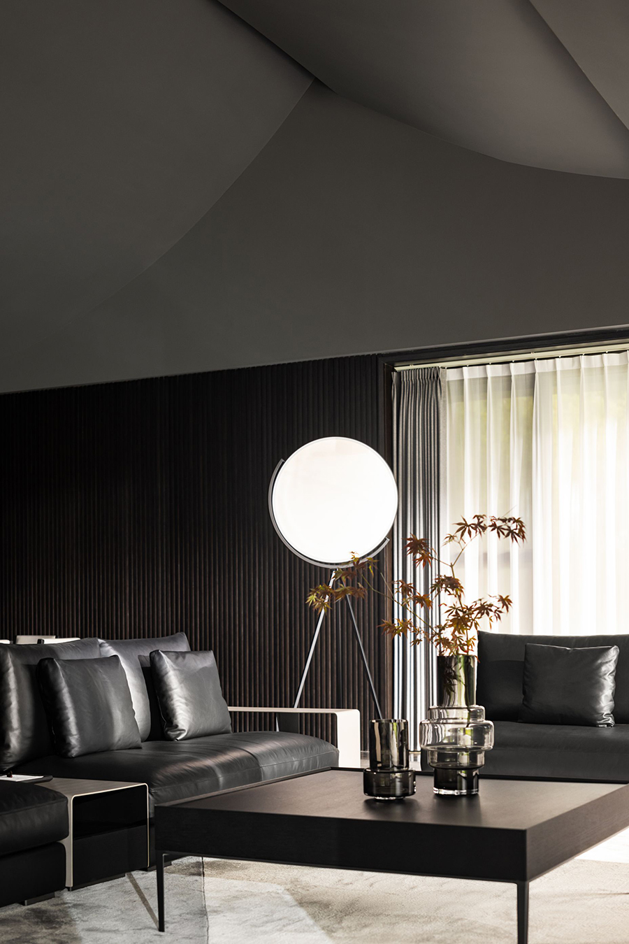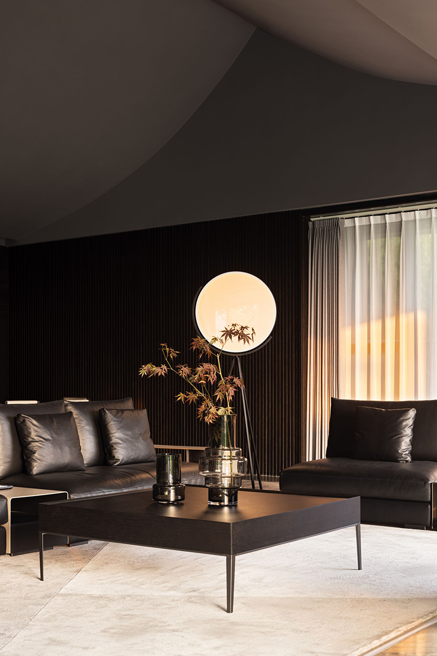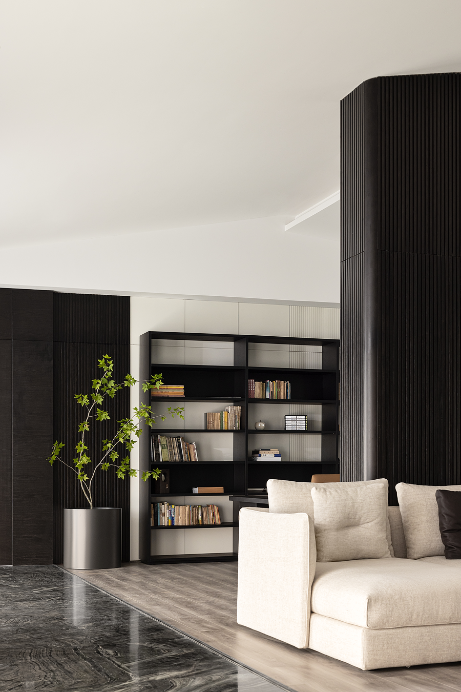 空间线条凝练大气,块面简洁有序,经典黑白色调搭配得相得益彰。白色BLOOM盛心沙发丰富了视觉美感,演绎出安静舒缓的空间节奏。