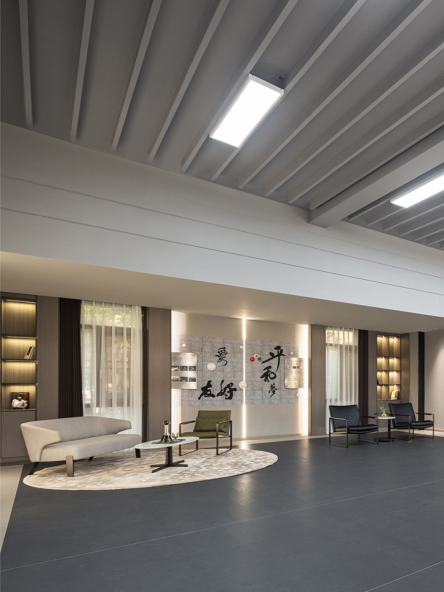 联接馆主要分为5个空间,分别为:一家亲厅、秀厅、翻开厅、联接厅以及友好厅。各空间的命名皆取意于熊峰不同时期的几幅重要书法作品,寓意着以汉字作为联接纽带,将中外文化交流一直延续下去。CAMERICH锐驰家具融洽在联接馆的各个空间中,通过风格与品质将空间承载的每一件、每一物、每一景完美地诠释。