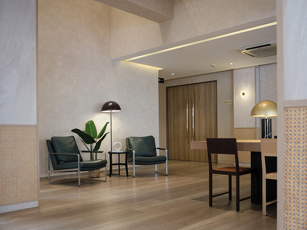 设计师从原有周围环境提取出本地特有材料,以现代设计手法重新定义传统特色。木质、藤编元素与米色调的结合,让空间中充满温馨的氛围。