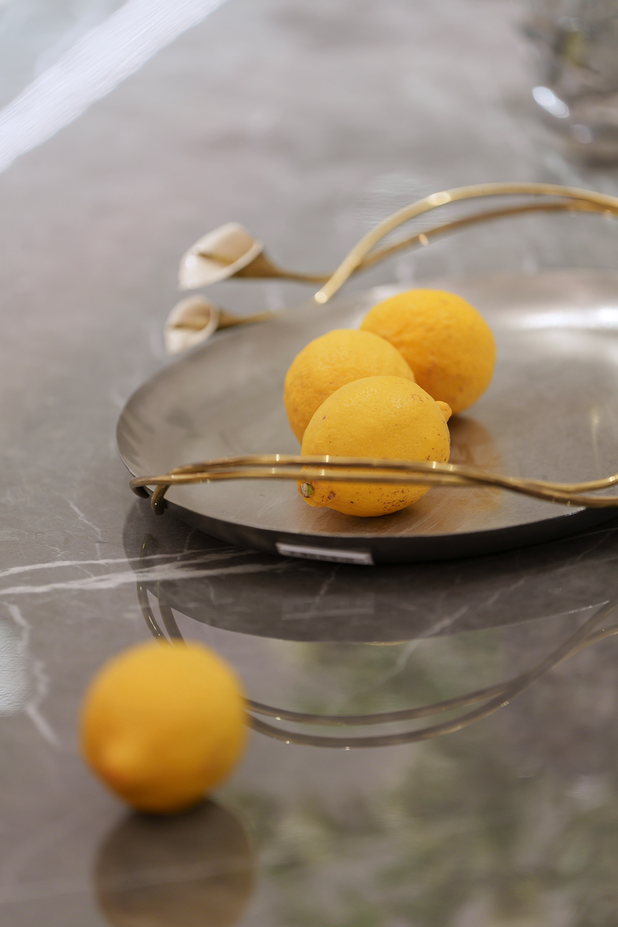 长餐桌区域OLIVE橄榄桌深色大理石桌面,充满质感,彰显主人的不凡与对来客的重视。空间中的拱形元素呈现出优美曲线与弧度,让空间不再单调沉闷,同时与OLIVE橄榄桌的弧形线条相呼应,让空间与空间之间实现更好的过渡。