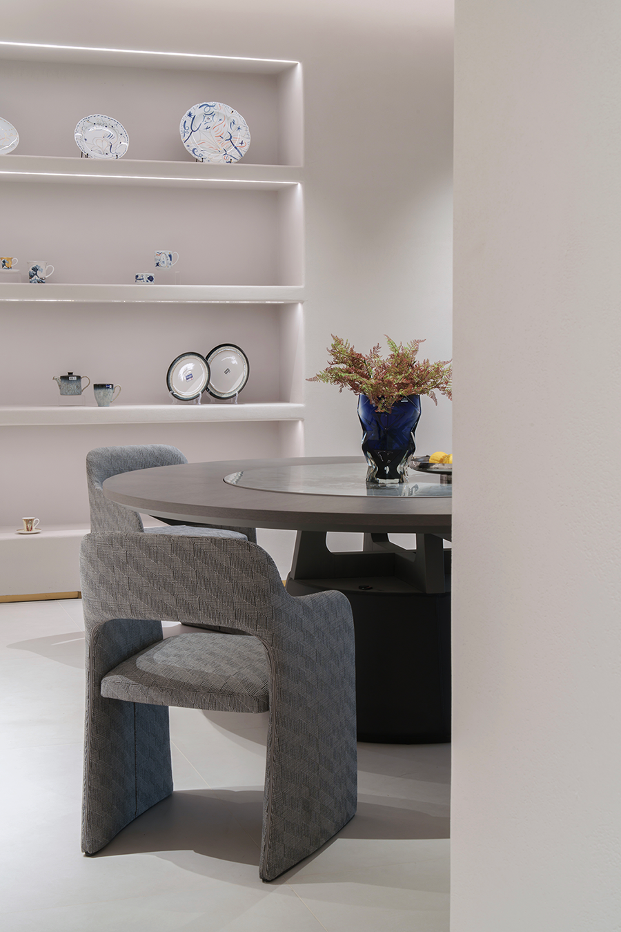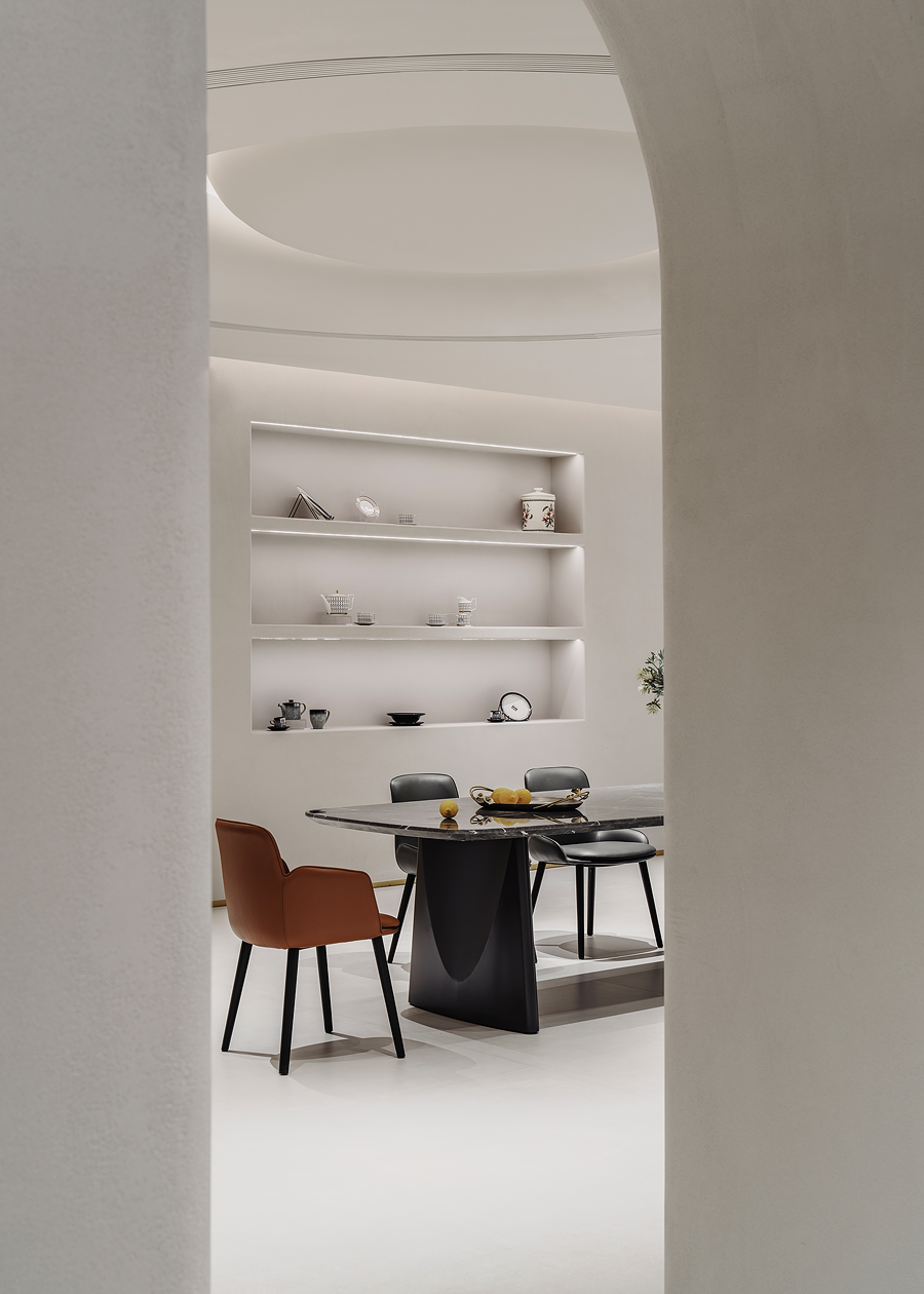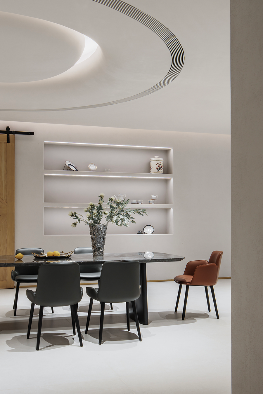 围合的会客空间,既能满足休闲需求,又能激发起人们对生活温度的向往。宽阔的展示空间,尽显多种家居可能性,让个人意趣充分展现。