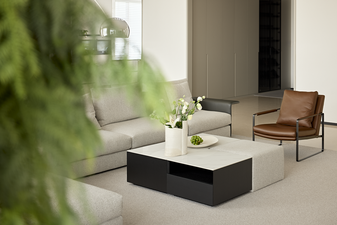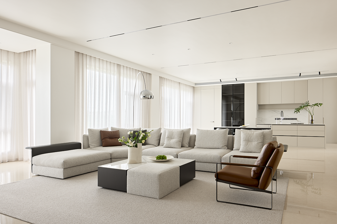 客厅是整个家的核心区域。BLOOM盛心沙发简洁大方,与空间宽敞通透的设计风格相互契合,为张女士一家提供了一个舒适的休闲场所。