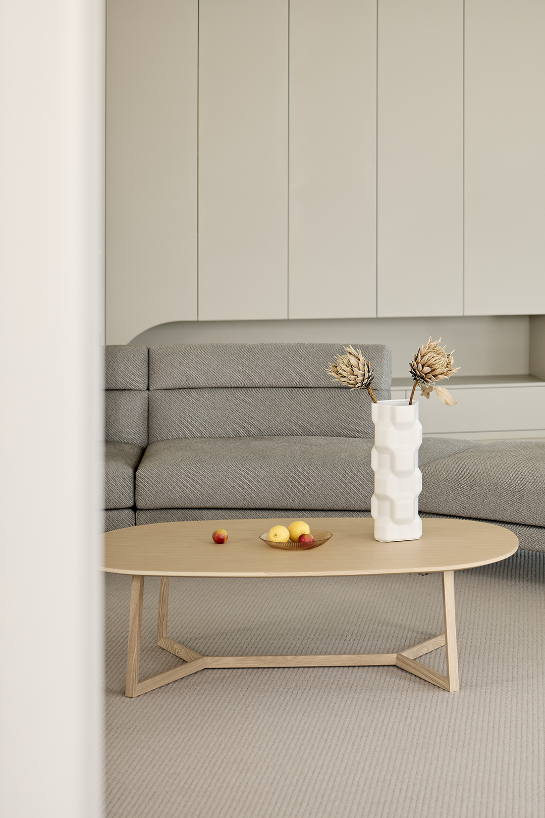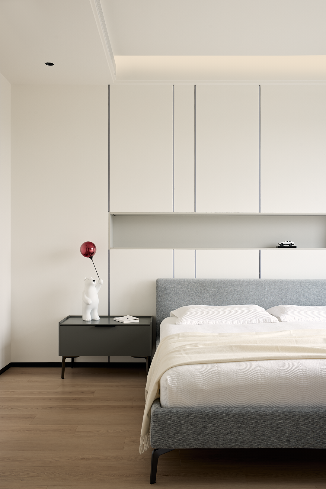 长辈房的设计融合了柔和的色调和温馨的氛围。LUNA伴月床高背的床头设计,为主人带来舒适的坐靠体验。浅灰色的床体与房间的整体色调相呼应,既提升了房间质感,又营造出恬静的睡眠氛围。