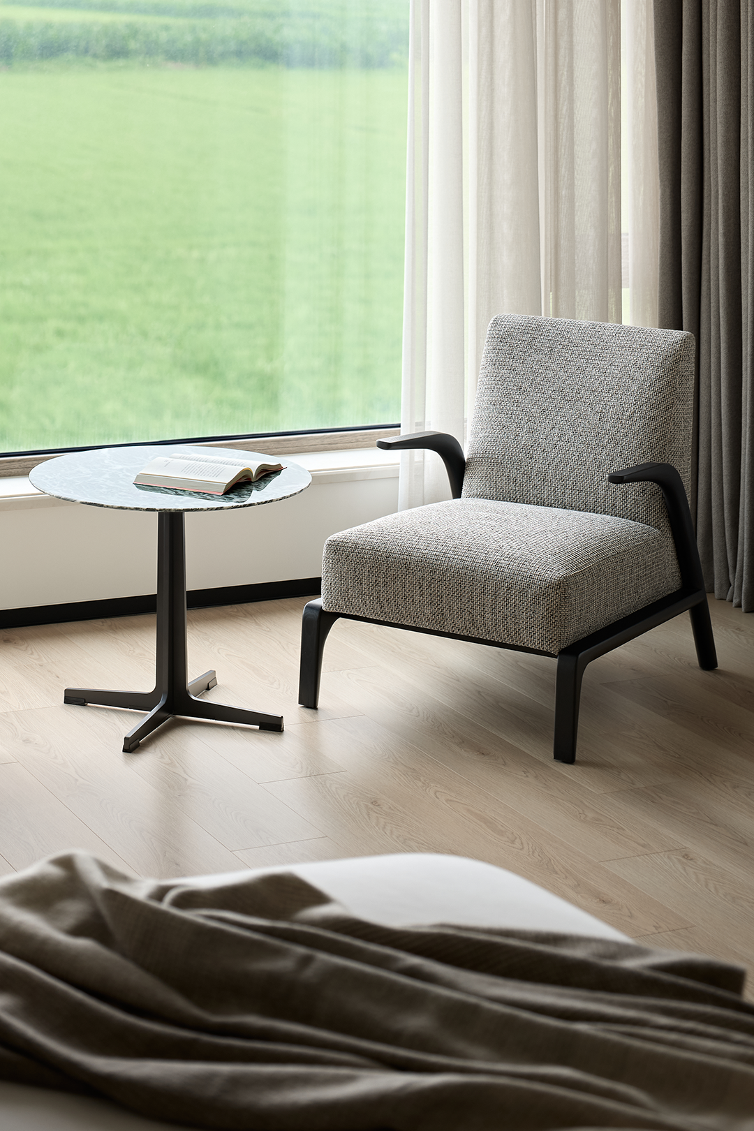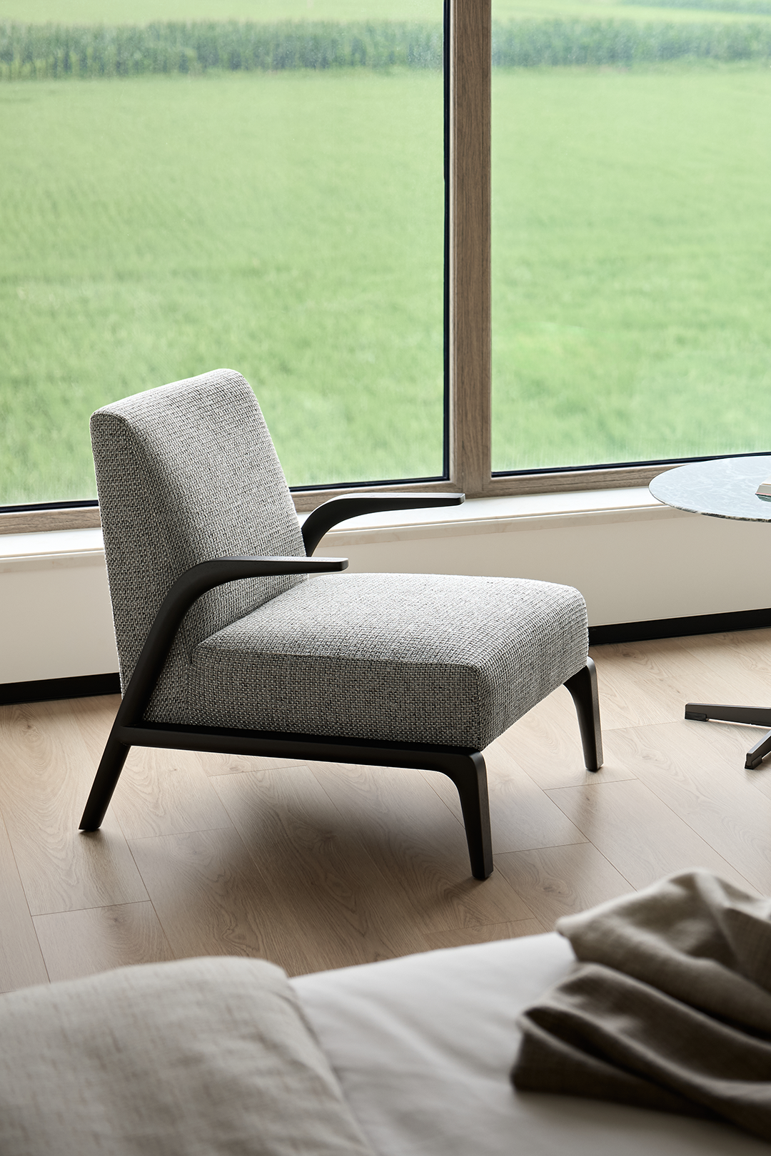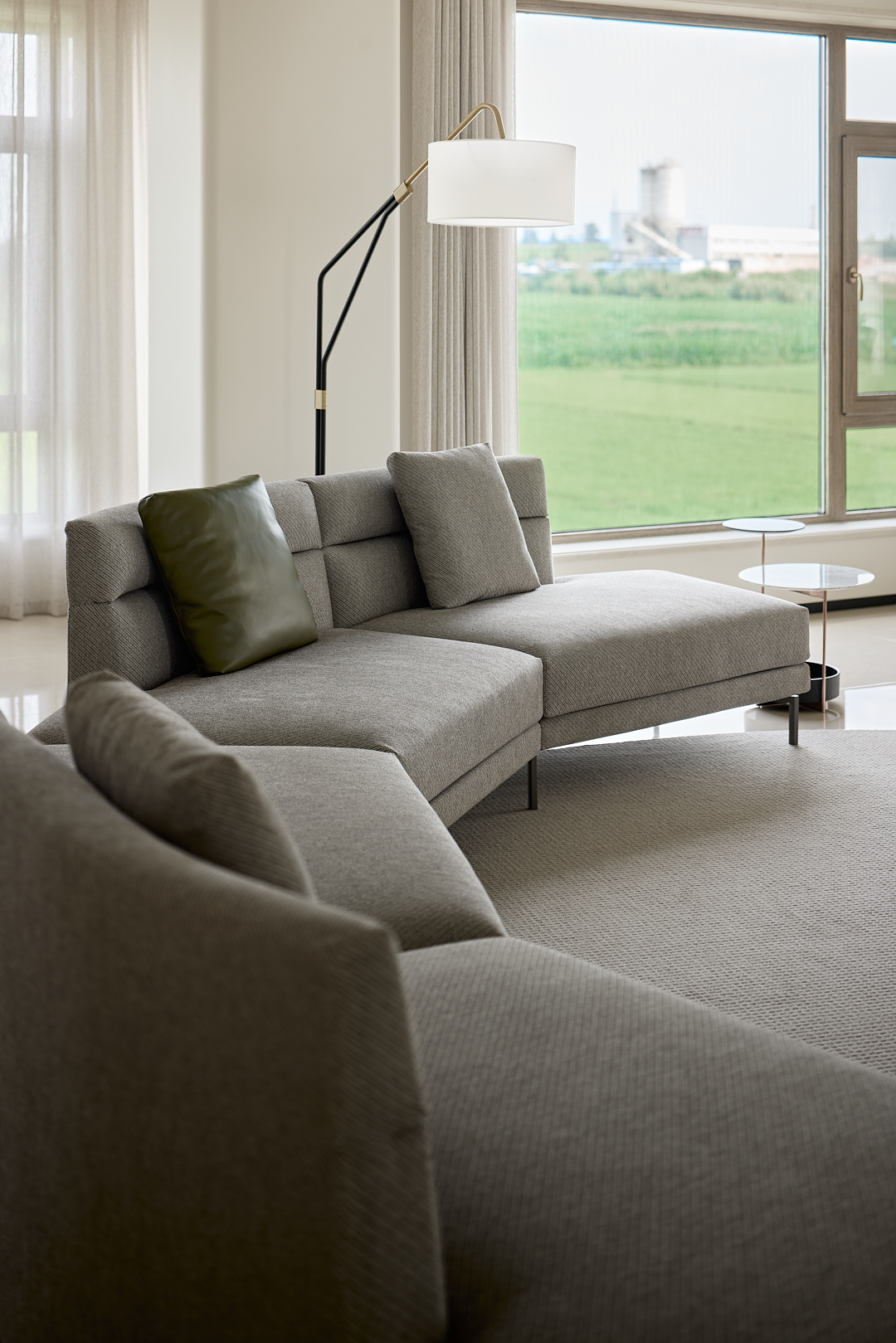 窗外的绿色植物和远处的自然环境,让人仿佛置身于大自然的怀抱中,为主人带来视觉上的愉悦,以及心灵上的平静和放松。