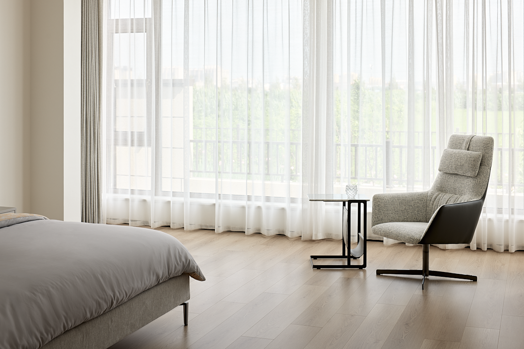 阳光透过窗纱洒落在地面,形成一道道光影,伴随着绿植的点缀,营造出静谧安然的氛围。在此可以让主人,于忙碌的日常生活中,回归片刻的宁静和自我。