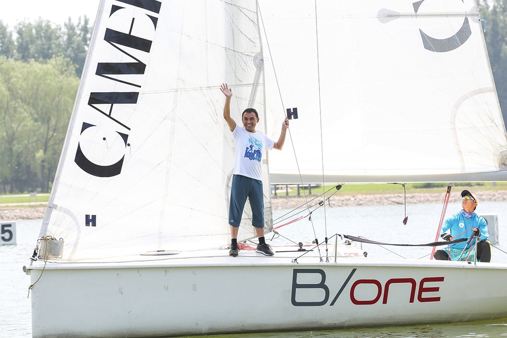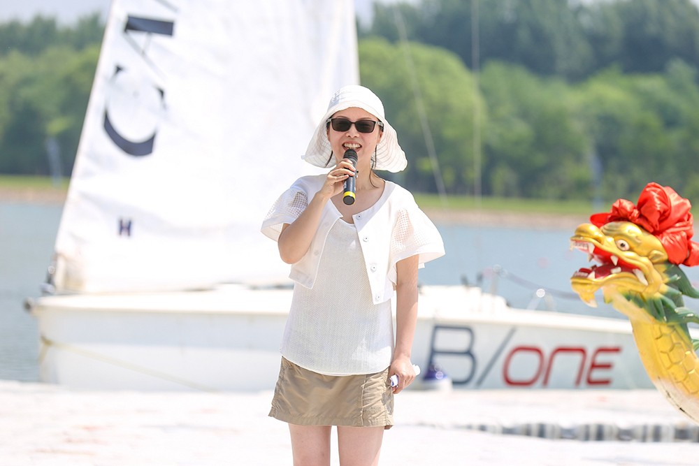 阳光下,碧水共蓝天一色。水面上闪过的一点白帆吸引了众人的目光,锐驰总经理傅海君先生站立船头,挥手微笑。